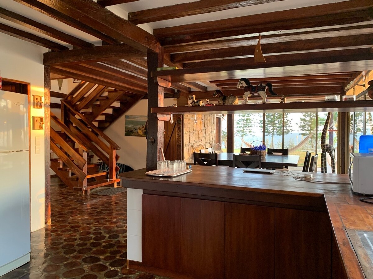 Despierta con el sonido de las olas y una vista increíble al mar desde las dos habitaciones. Estamos a pasos de la arena, en la tranquila playa de Las Tunas, con restaurantes justo al lado. Disfruta los atardeceres desde el balcón, mira tortugas nacer todo el año y ballenas de julio a octubre. La casa tiene todo lo que necesitas: camas cómodas, cocina equipada, internet rápido y hamaca en la terraza. Ideal para relajarte, surfear o explorar. Nota importante: No contamos con garage interno