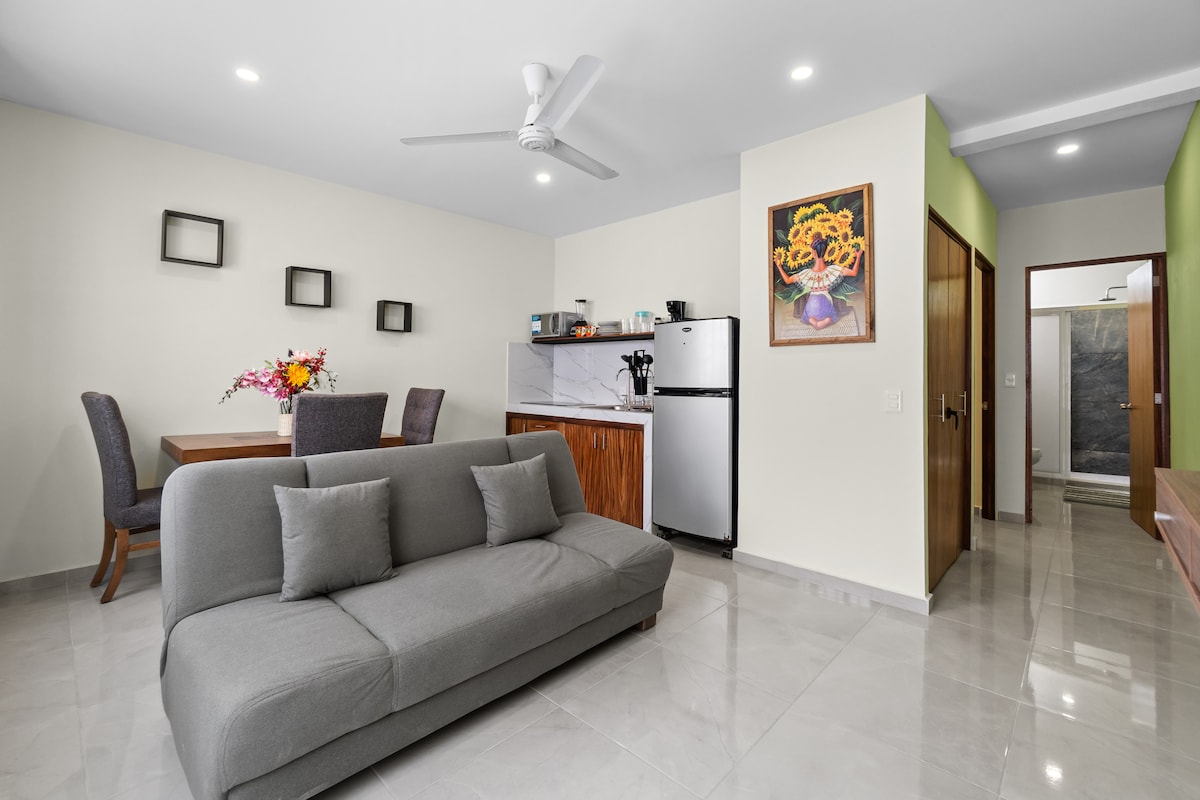 Насолодіться просторим помешканням на третьому поверсі зі швидким Інтернетом, всього в 3 кварталах від пляжу та в півкварталу від річки Куале, яка з’єднується безпосередньо з еспланадою без перетину вулиць. У нас є двоспальне ліжко розміру Queen size і зручний двоспальний диван-ліжко, кондиціонер, обладнана кухня, гаряча вода та все необхідне. Громадський транспорт, коли ви виходите, ресторани, бари, аптеки та все необхідне для приємного перебування знаходяться всього за кілька кроків від вас, вам не знадобиться транспортний засіб або транспорт у цьому районі :).