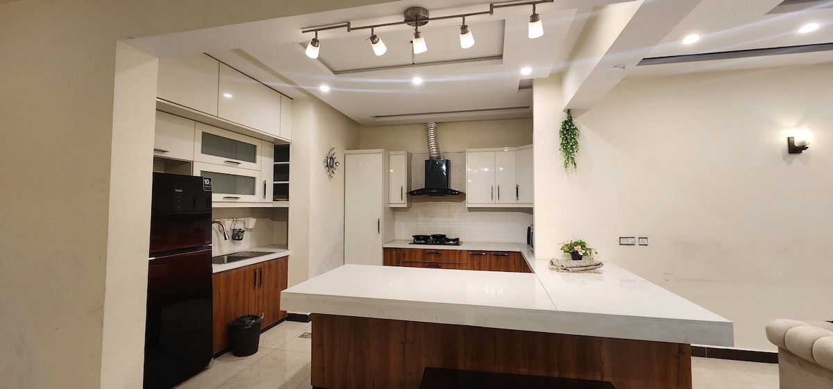 Ласкаво просимо до нашого вишуканого помешкання Airbnb, розташованого в центрі спокійної та висококласної спільноти Phase 5 DHA, що пропонує розкішне перебування в повністю мебльованому сучасному помешканні. Спальня з суміжною ванною кімнатою. Насолоджуйтеся просторим лаунж-зоною з приватною зоною для барбекю,а також відкритою кухнею та обідньою зоною. Паркування на території. Відкрийте для себе зручність і мальовничі краєвиди в цьому приголомшливому помешканні. 3 хвилини пішки до секторального парку 7 хвилин пішки до торгового центру Penta Square Mall та комерційної зони. 15 хвилин їзди від міжнародного аеропорту Алама-Ікбал