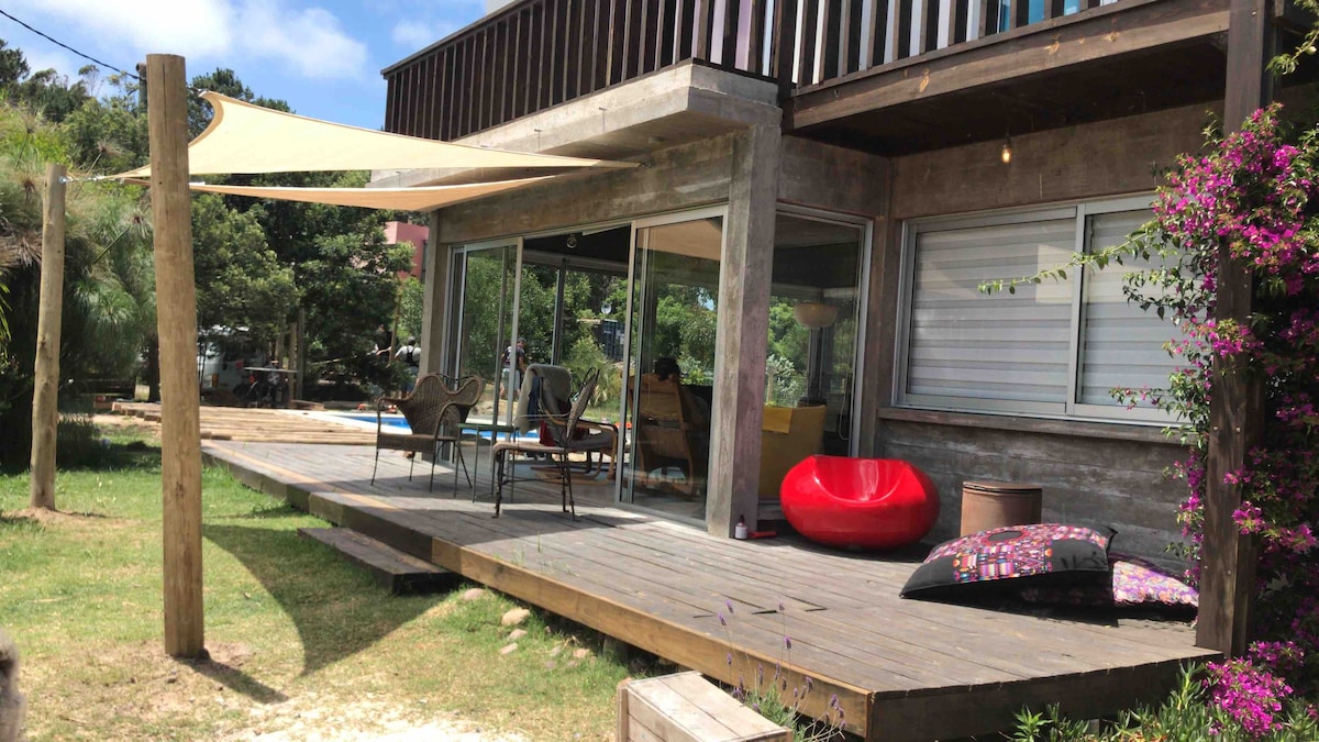 3 км від Хосе-Ігнасіо, 100% дерев’яний будинок, ідеально підходить для пар, які шукають спокою. З нього відкривається прекрасний краєвид на лагуну Хосе-Ігнасіо та море, а до пляжу 50 м. У помешканні є дві спальні з ліжком queen-size і вміщує 4 осіб. Їдальня та кухня повністю обладнані. З тераси біля басейну видно захід сонця. Для любителів кайтсерфінгу ми маємо прямий доступ до лагуни.