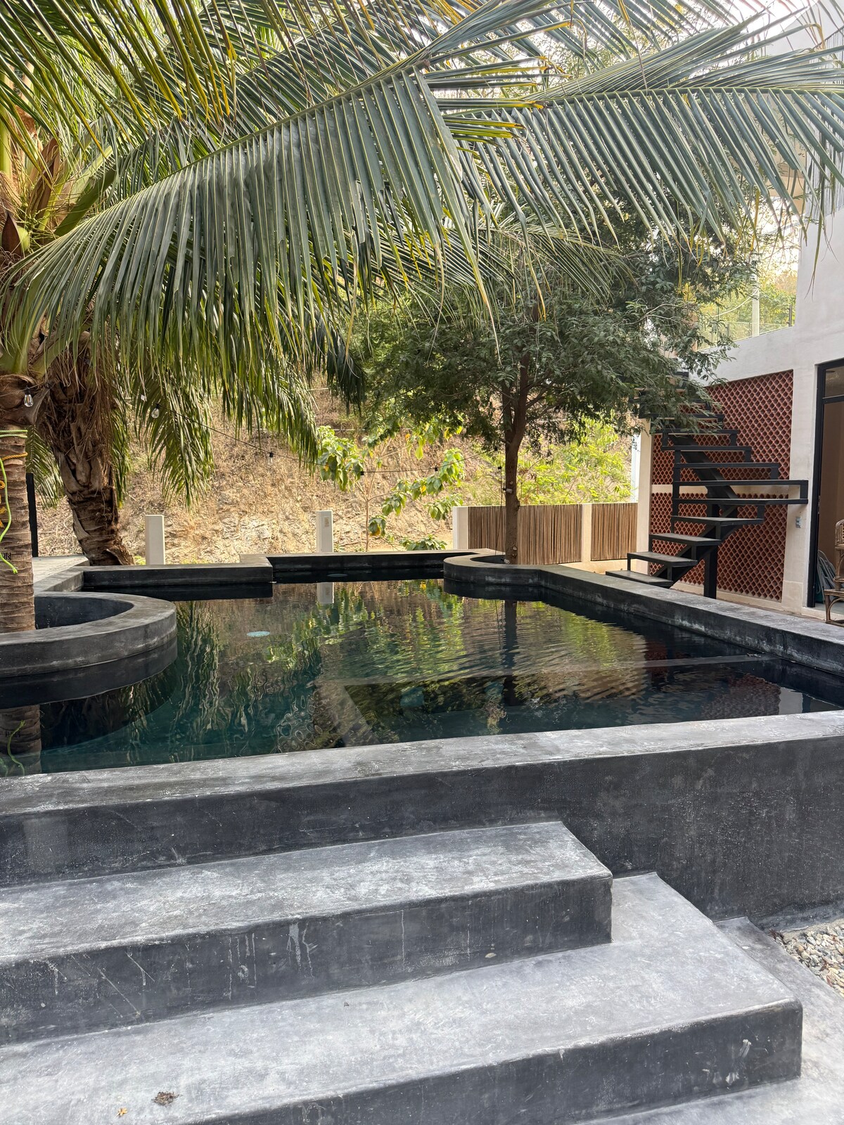 Прокинутися в цій оселі - це мрія! Будинок розташований прямо на березі моря, щоб насолоджуватися найкращими заходами сонця щодня. Він має два поверхи. Спальня знаходиться на верхньому поверсі, а також робоче місце (Starlink) і гамаки для відпочинку. Стеля – це чудова палапа. У будинку є невеликий приватний басейн, звідки можна насолодитися найкращим видом на Плайя-Мермехіта. Будинок дуже відкритий, щоб насолодитися свіжістю вітру та найкращими краєвидами.