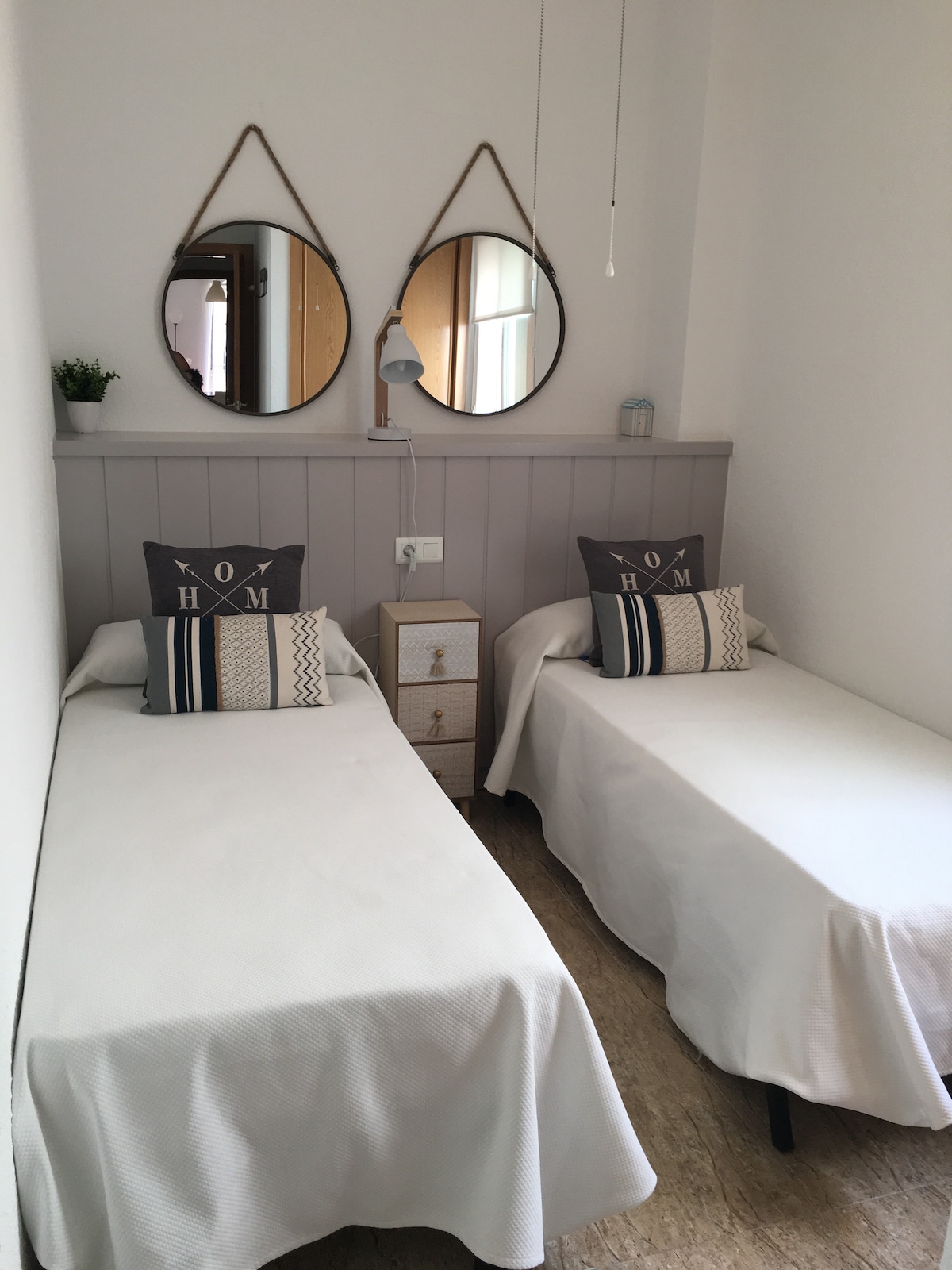 EL apartamento es amplio 90 M y GARAJE DE 23 METROS con puerta independiente . AIRE ACONDICIONADO EN TODOS LAS HABITACIONES . BAÑERA GRANDE .Balcón con sillas y mesa es un 2° muy equipado para estar como en casa , Sabanas y toallas de baño y de mano , radiadores Calor . menaje playa 4 sillas playa, sombrilla Grande, nevera . Equipado para niños bajo petición Trona, parque cuna con colchón , vigilancia de sonido , platos , cubiertos, ETC .El barrio tranquilo, con zonas verdes.