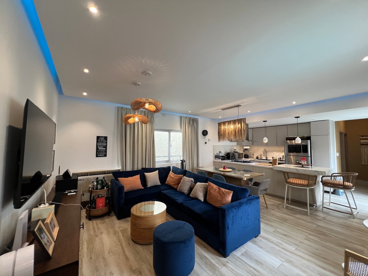 Насолодіться затишним перебуванням у цьому помешканні з 3 спальнями та 3 ванними кімнатами в центрі Пунта-Кани. Оснащена кондиціонером, високошвидкісним Wi-Fi, 2 смарт-телевізорами та власною терасою з джакузі (без гарячої води), вона пропонує ідеальний баланс комфорту та зручності. Повністю обладнана кухня, безпечна парковка, цілодобова охорона та великий загальний басейн забезпечують бездоганний відпочинок. Всього 3 хвилини від центру Пунта-Кани та COCO BONGO, 12 хвилин від аеропорту та 15 хвилин від пляжу – бронюйте зараз!