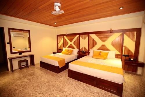 Our Superior Triple room has all the amenities such as Air-conditioning, attached bathroom etc, which are necessary and needed by guests to enjoy their stay at our property. Wake up in the morning to the view of kitesurfers in the lagoon. A wonderful breakfast is prepared by our great staff for the guests to enjoy. Afterwards, they can walk in the beach nearby or relax at the wooden hut with the calm and cool breeze from the lagoon. The room is suitable for both long stays or short stays.
