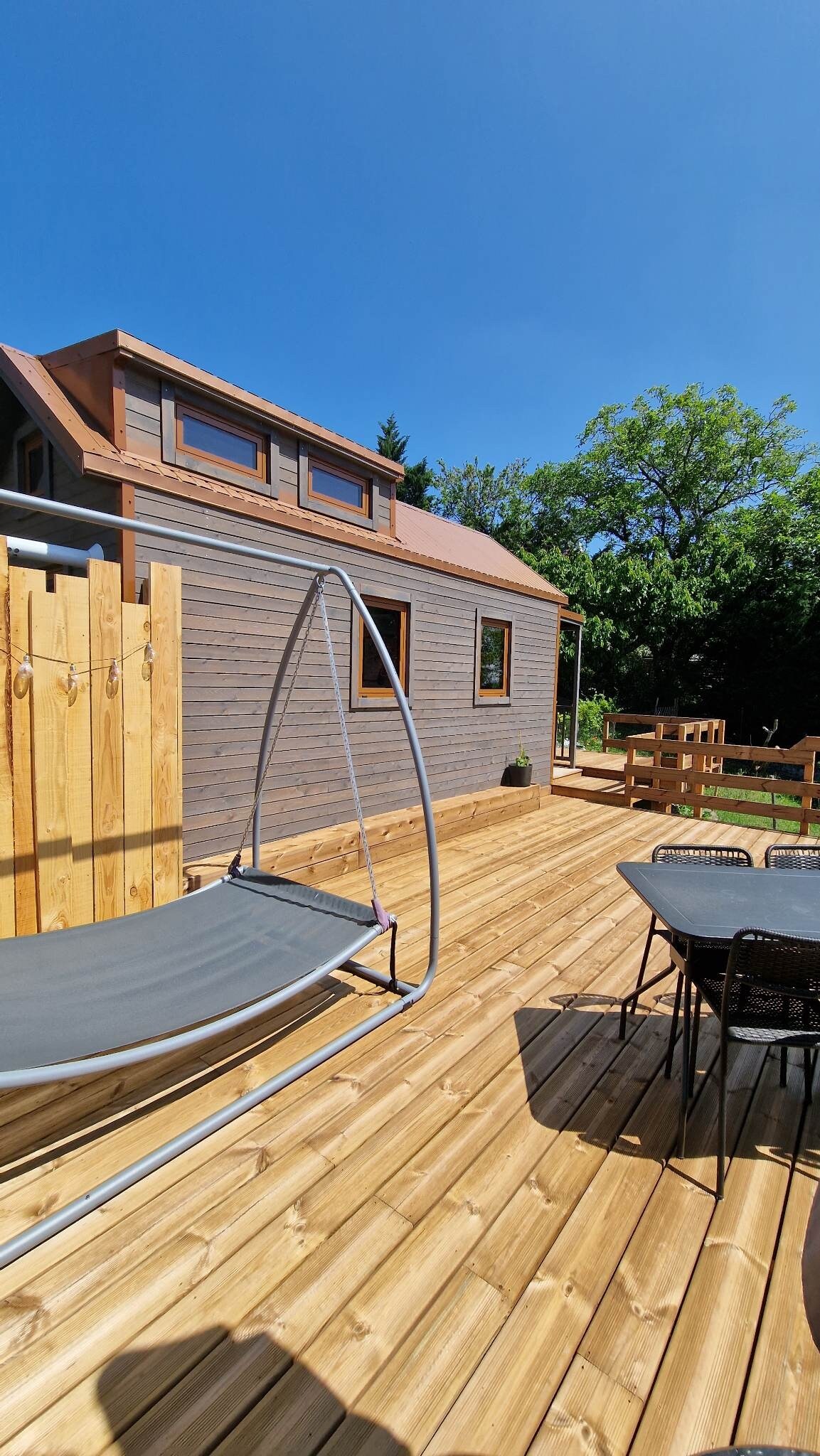 La Cabane aux étoiles - це чарівне місце з унікальним дизайном. З спальні з ліжком «Queen size» ви спите майже під зірками з неймовірним панорамним вікном. На 2 двоярусних ліжках 140 см з унікальним видом на парк ви сховані на місце. Загальна площа 36 м2 Кухня/їдальня з кондиціонером і тарілками, мікрохвильова піч, холодильник. Тераса та необов 'язкова скандинавська ванна - 50 € за день і 25 євро/день після цього Басейн 9x3, спільний для всіх 4 зрубів