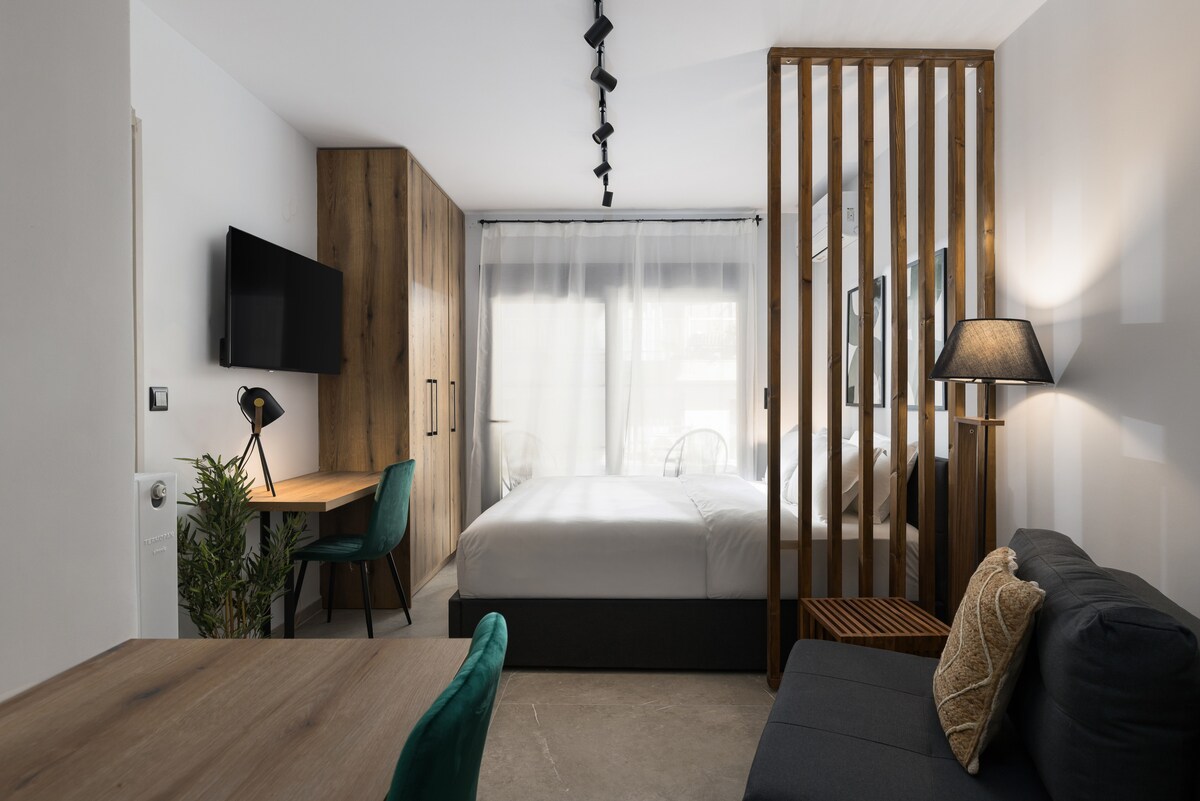 У самому серці університетського кампусу Салонік, поруч із центром міста, олімпійським стадіоном «Кафтандзогліо» та за 450 метрів від станції метро, розташовані повністю відремонтовані, обладнані, затишні апартаменти площею 27 кв. м, які пропонують спокійне та комфортне розміщення. Ідеально підходить для гостей, які подорожують на автомобілі, оскільки є прямий доступ до автостради, безкоштовна вулична парковка, яка зазвичай доступна в радіусі 50 м. Не дуже рекомендується для пляжних або літніх напрямків, але все ж варто зупинитися.