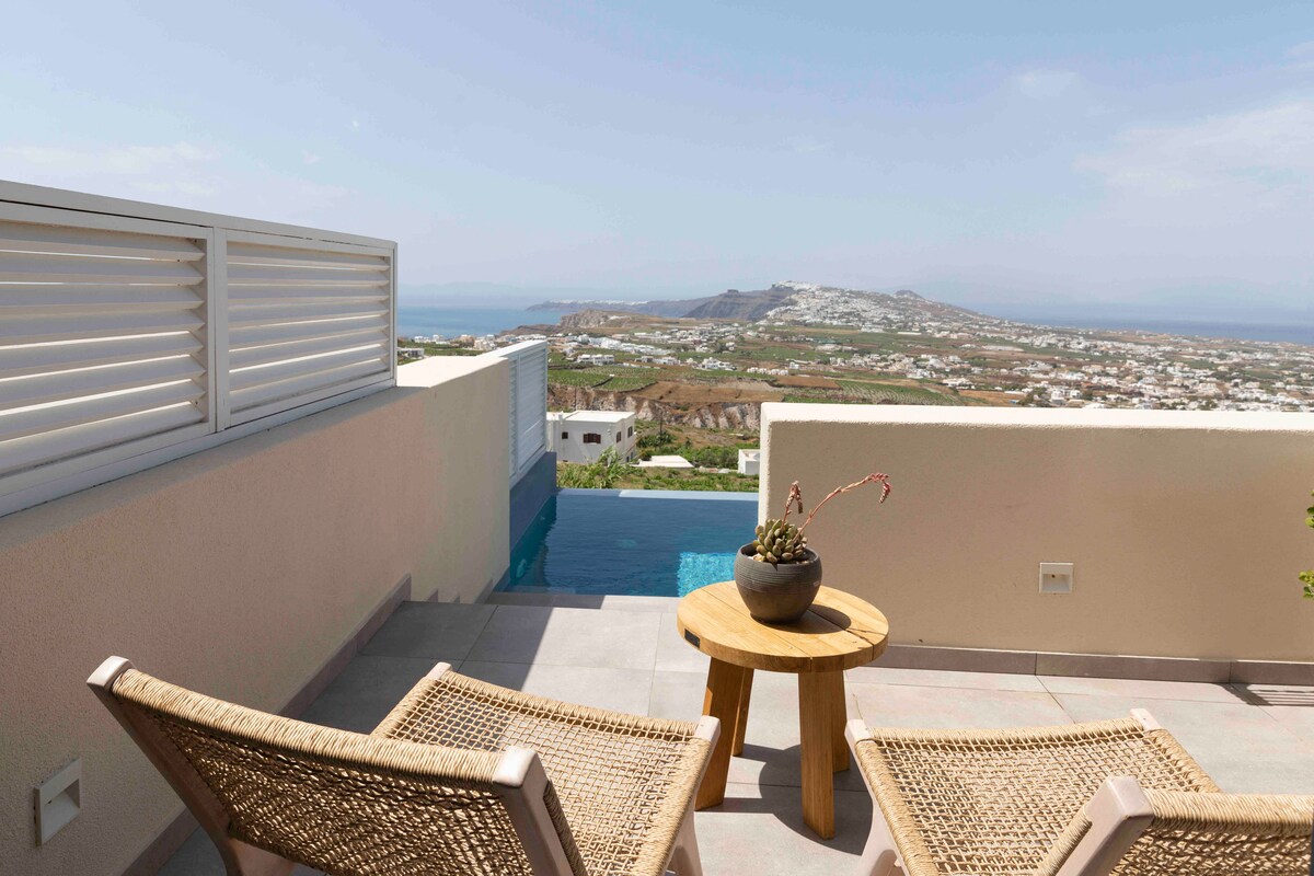 Розкішна вілла Santorini стане вашим приватним раєм на літо!Розташований у Pyrgos Kaliistis, прямо посеред острова, з нього відкриваються панорамні краєвиди та можливість перебувати там, де ви захочете, у найкоротші терміни! Він ідеально підходить для 2 дорослих! На віллі є 1 затишна спальня, 1 ванна кімната, повністю обладнана кухня з усією сучасною технікою, LED-телевізор. На відкритих майданчиках є приватний басейн (розміром 2 * 1,5 метри) з фантастичним видом на море та 2 сонячні крісла.