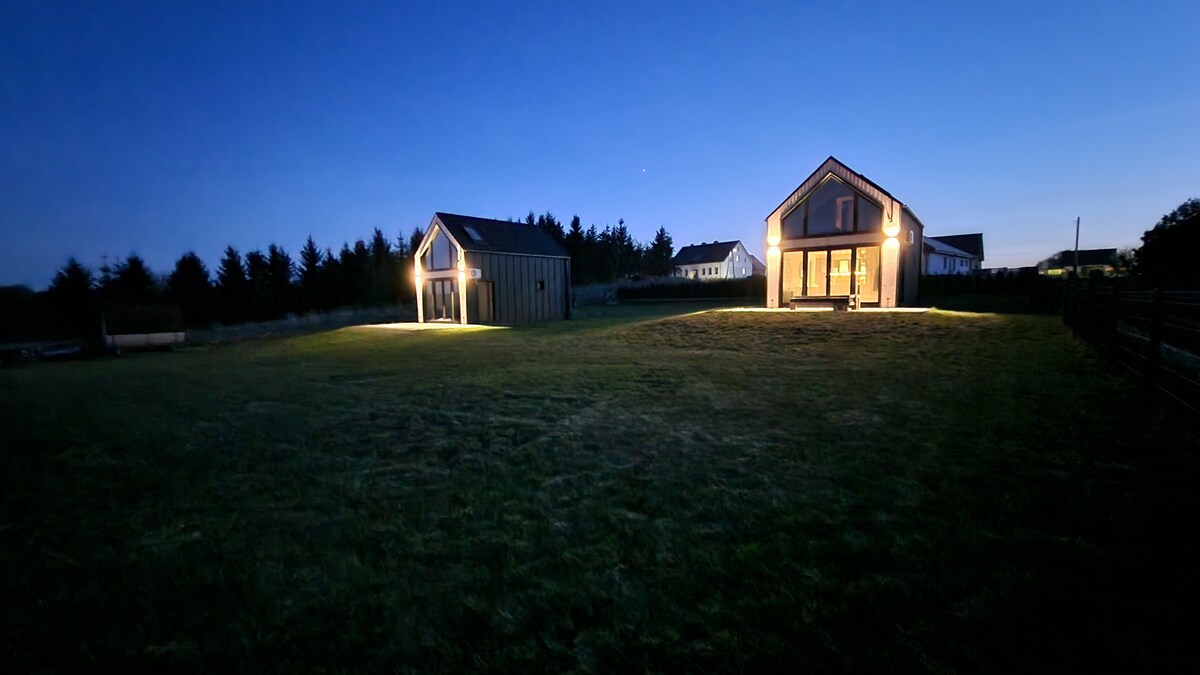 Idealne miejsce na wypoczynek nad wodą. Jezioro z dwoma wyspami. Do dyspozycji gości są dwa komfortowe domki: Black Deluxe i Gray Deluxe. Obiekt znajduje się tylko 60 m od plaży. W okolicy czekają malownicze trasy rowerowe i piękna natura. Na terenie obiektu dostępna jest sauna. Spokojna okolica sprzyja relaksowi. Zwierzęta mile widziane.