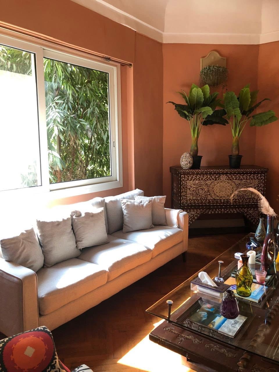 Experience the grandeur of "Old World" Cairo in this artfully curated sanctuary. Nestled in the heart of the historic Garden City, most prestigious and secure "leafy" neighborhood. this high-ceilinged apartment is a masterclass in eclectic elegance. From the hand-carved heritage doors to the sun-drenched private sunroom featuring a stone fountain, every corner of this home has been designed for the traveler who appreciates art, history, and a tranquil escape from the city’s vibrant energy,