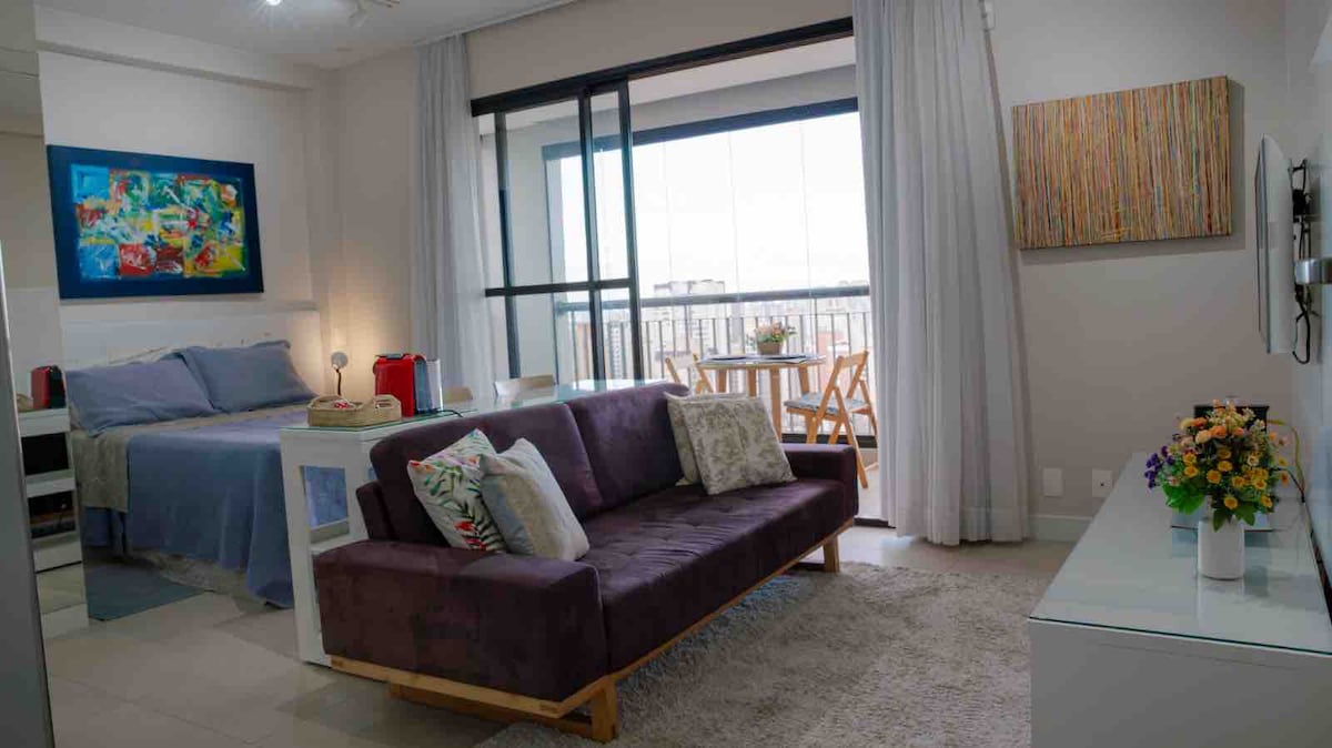 Нова, затишна, повністю обладнана студія. Відмінна якісна мережа Wi-Fi. Безпечний регіон, з обережністю, які слід мати у великих сімейних містах, з усіма послугами поблизу. 300 м від станції метро Santa Cruz do та торгового центру Santa Cruz Metro. Цілодобова парковка неподалік. Цілодобовий шлюз за допомогою біометрії обличчя. Поруч із медичним центром лікарні Сан-Паулу. Чудовий район для піших походів, багато варіантів ресторанів, кінотеатру, театру...