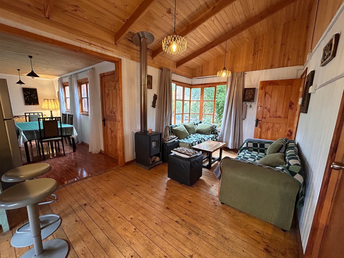 Agradable cabaña con maravilloso mirador hacia la cordillera de los andes, muy tranquilo y confortable. Ideal para venir a relajarse, crear recuerdos inolvidables, desconectarse de la cuidad y recargar energía en medio de los hermosos bosques que rodean este alojamiento único y familiar.
