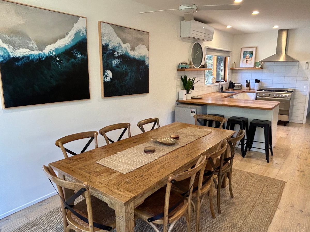 Have fun with the whole family at this Old Lonny Mid-Century Classic. Recently renovated with all the mod-cons and plenty of toys including bikes x3and a SUP (Have a look at all the photos) for the perfect beach getaway only 4 houses from back beach, 10 minute walk to front beach ideal locale on a private road within old Lonny. 1xKing 1xQueen and 2x2 bed bunks, a garage to play in, a big backyard to lounge in, and a comfortable house to hang in. Listen to the waves as you go to sleep. Enjoy!
