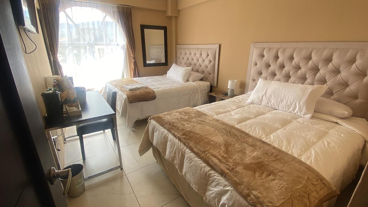 Красива квартира повністю обладнана. 2 СНІДАНКИ ВКЛЮЧЕНО. (П.35. За додатковий сніданок) Розташоване в Edificio de Lujo, де є: Тренажерний зал, зелена зона, дитяча зона, представницький номер, зона коворкінгу, тераса тощо; у найкращому районі Кецальтенанго, поруч із: Торгові центри, ресторани, супермаркети, кінотеатри тощо.