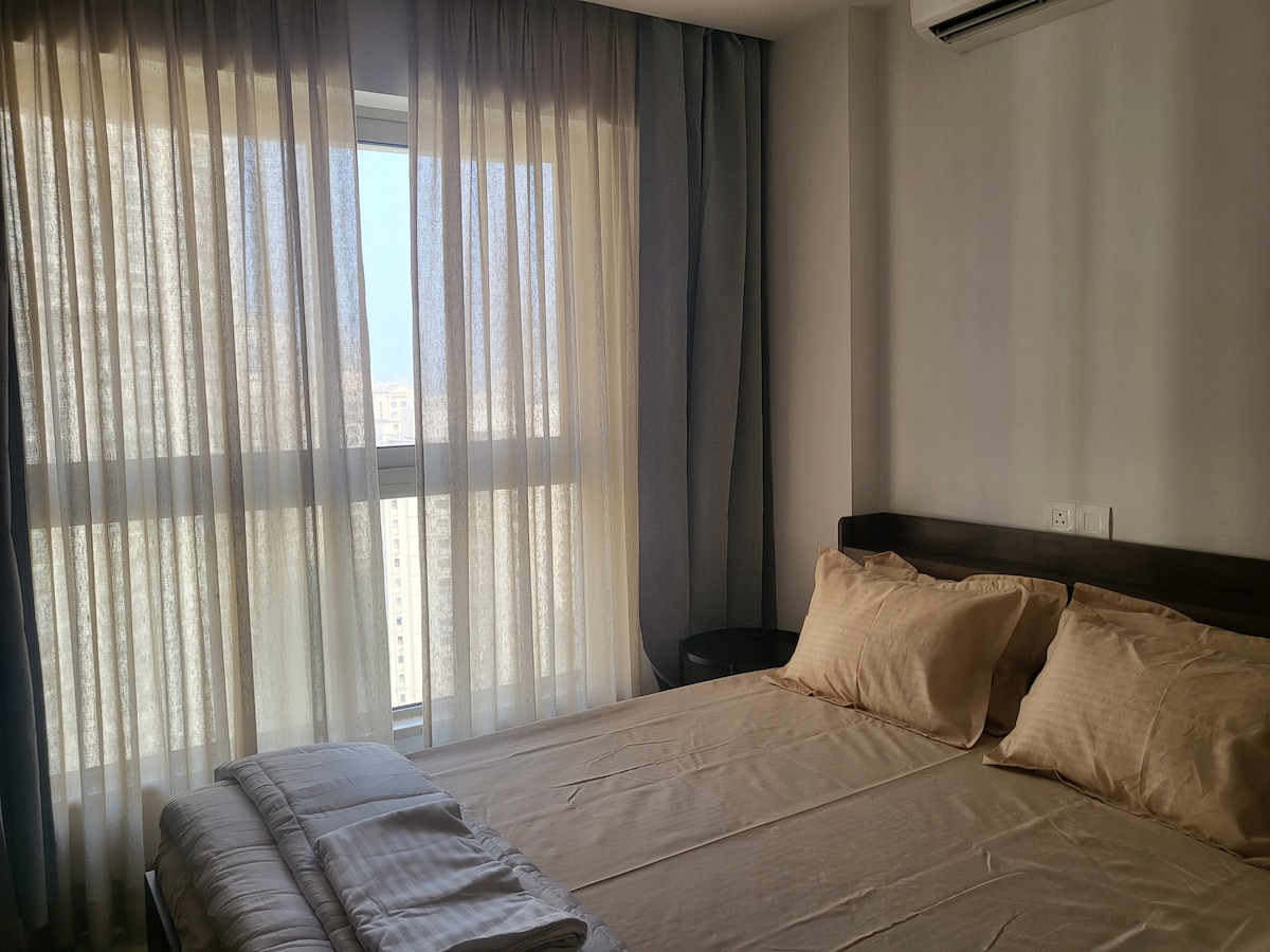 Розкішне перебування в нашій повністю мебльованій квартирі 1BHK, яка пропонує затишну спальню, дві ванні кімнати (одна при спальні, одна спільна) та повністю функціональну кухню з технікою та базовим кухонним приладдям. Відпочиньте в просторій вітальні з великим смарт-телевізором та елегантним дизайном інтер 'єру. Насолоджуйтеся високоякісними меблями, які створюють помешкання далеко від дому. Ця квартира ідеально підходить як для короткого, так і для тривалого перебування. Вона обіцяє комфорт і зручність у чудовому місті. Забронюйте зараз, щоб отримати виняткове помешкання!