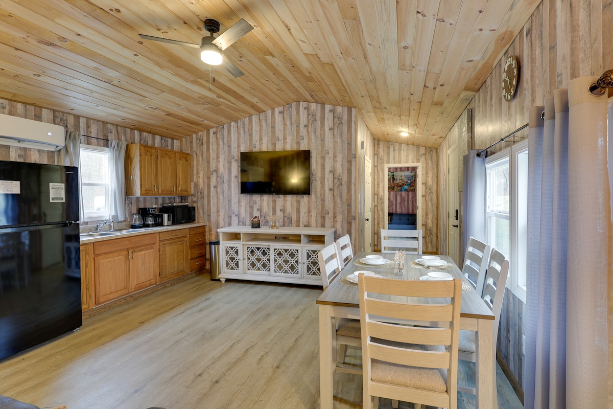 Розташований на деревах високо над водою, зруб Overlook Cabin пропонує спокійні, комфортні та затишні враження від річки Огайо з великим вікном на березі річки, терасою 8x12 футів і джакузі-ванною. У помешканні площею 12x40 футів є ліжко queen-size, 2 односпальні ліжка, ще одне ліжко в лофті та диван, і це чудово підійде для сімей, мисливців або пар. Надається місцева кава. Власники живуть на місці, якщо виникнуть будь-які проблеми. Можна з домашніми тваринами. Доступний безкоштовний Wi-Fi.