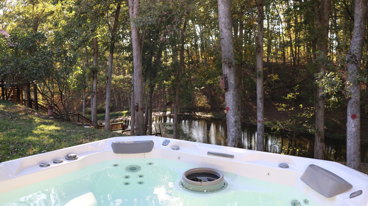 *ОЗНАЙОМТЕСЯ З ІНФОРМАЦІЄЮ НИЖЧЕ ЩОДО ЗИМОВИХ ВІЗИТІВ! Розкішний, затишний будиночок, розташований в лісовому березі озера на березі приватного рибальського ставка з окунем, блакитним жабром і сомом. За декілька хвилин від парку Оглебей і недалеко від міста Вілінг - але це приватне та унікальне враження в дереві. Прокидайтеся під сонячне світло та пташині пісні, ловите рибу в ставка, гуляйте стежками та переглядайте бібліотеку. У цій оселі є все необхідне, і нічого, що вам не потрібно. Ця сільська місцевість на переобладнаній фермі - це справжнє задоволення!