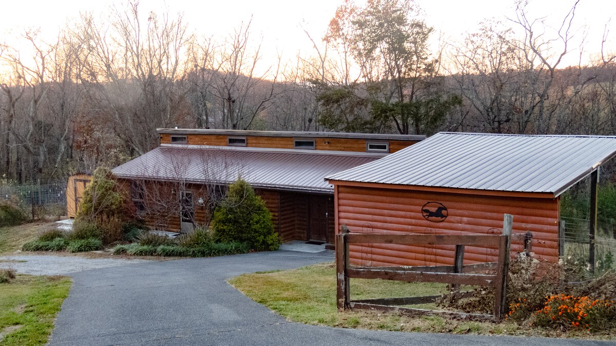 The Cabin is a luxurious rural escape, with a 3-person hot tub. Located on a permaculture homestead and native plant sanctuary, the space overlooks the garden and is surrounded by forest. Natural/local materials were used throughout (built in 2023). For larger groups, check out the guest house next door (Airbnb: Guest House on Homestead near Floyd/Blacksburg). ~10 miles to Floyd, ~20 miles to Blacksburg, ~35 miles to Roanoke.