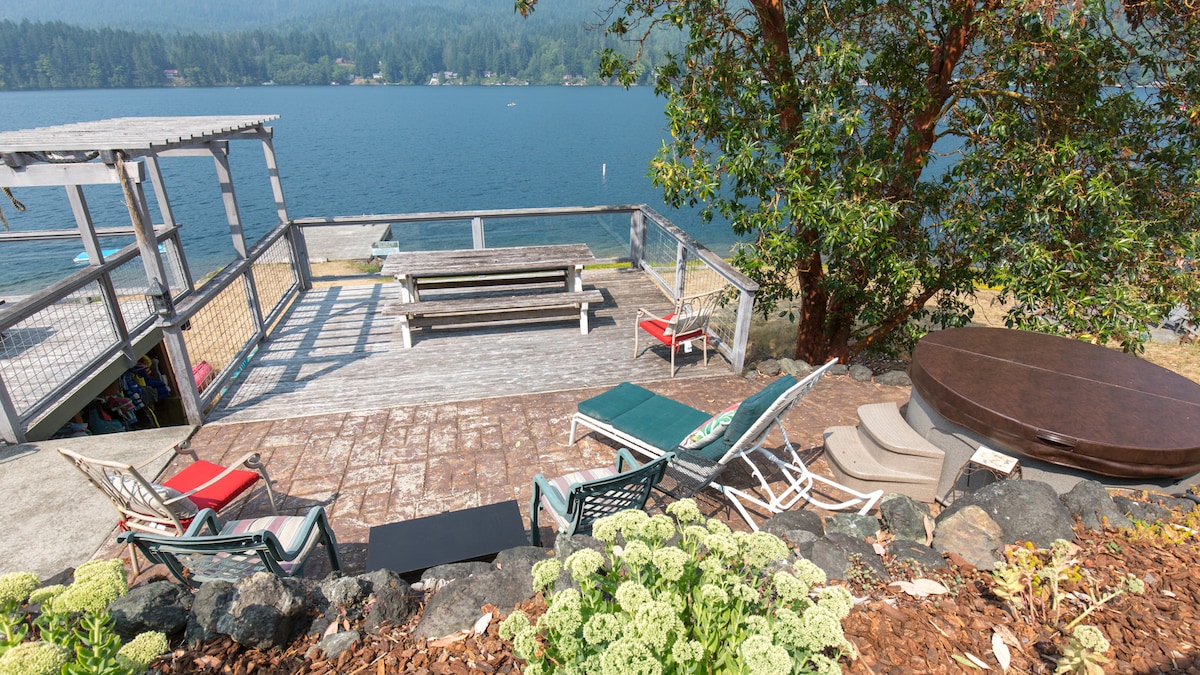 Будинок на набережній з приватною пішохідною стежкою до пляжу. Усамітнене та приватне помешкання з багатьма природними стежками, якими можна досліджувати помешкання. Виділіть лисих орлів, сидячих на деревах. Спостерігайте за оленями та маленькою дикою природою, які відвідують двір. Подивіться на кораблі на транспортних смугах і подивіться на морські дикі тварини, такі як тюлени, видри та випадкові кити, а також різноманітні птахи. Відпочиньте ввечері з видом на захід сонця та блискучими вогнями Вікторії, Британська Колумбія.
