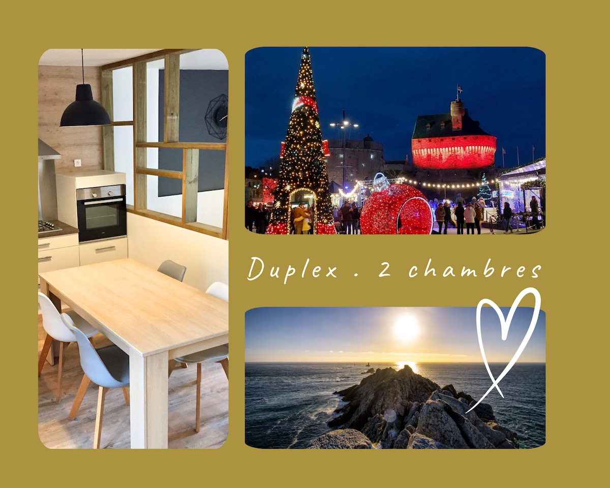 Прямо в центрі Сен-Мало, в декількох хвилинах ходьби від залізничного вокзалу, Інтра-Муро та пляжів. Резиденція нова, ваш будинок площею 48м ² з великим балконом спроектований як справжній люкс 4* зі зручностями преміум-класу. * супер обладнана кухня; * Велика вітальня з розкладним шкіряним диваном. * спальня зі зручною постільними речами + перукарня; * велика ванна кімната з зовнішнім вікном * закритий гараж з оптоволоконним Інтернетом, помешкання добре обладнане для дистанційної кабельної роботи + мережа Ethernet.