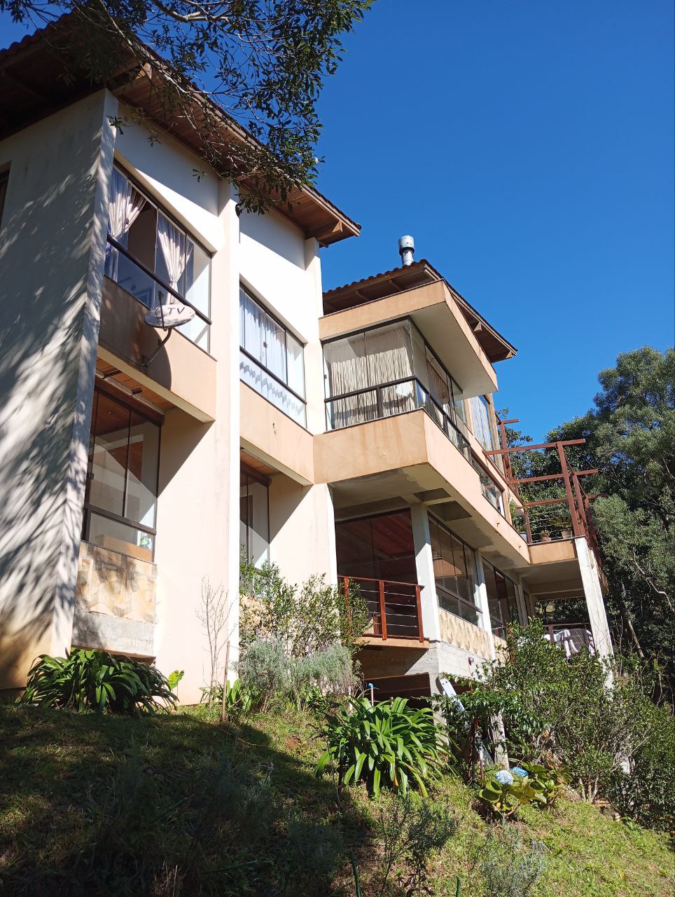 Насолоджуйтеся кліматом Серри з родиною та друзями. Тут ви забудете про свої занепокоєння! Наш будинок містить 4 апартаменти та чарівне «кафе», СПА-САЛОН посеред природи, чудовий вид. А захід сонця... Крім того, ігрова кімната, місце для гурманів, фортепіано, камін... Усе необхідне для відпочинку! Він знаходиться за 60 км від Флоріанополіса. Ранчо Квімадо відоме тим, що є столицею Strawberry Santa Catarina. Мірант Альто-да-Боа-Віста та смачні кафе також обов 'язкові для відвідування.