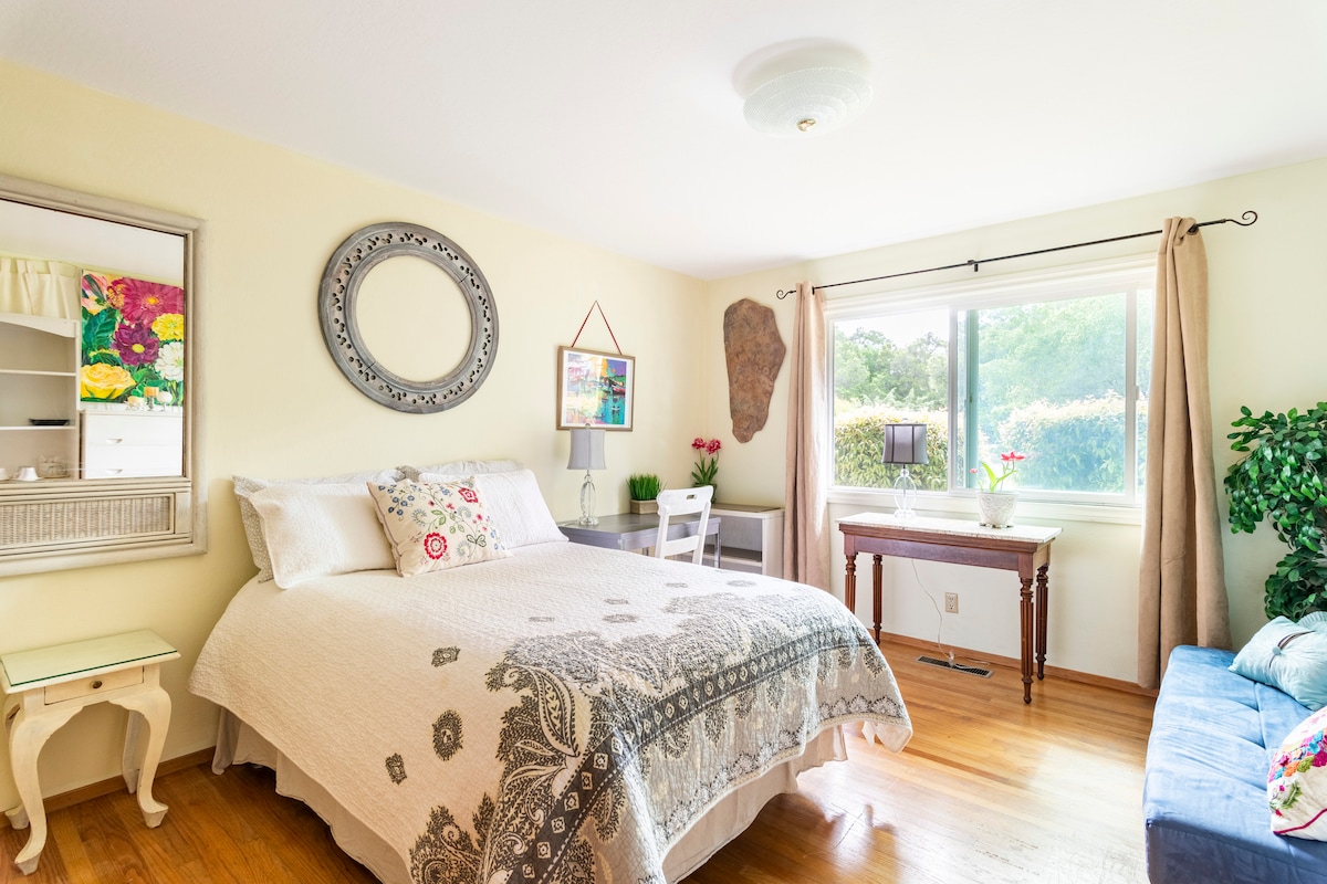 A completely separate private guest suite in a beautiful house, furnished with love and all the amenities you'd need. Also, super walkable & safe location, fast wifi, comfy beds, friendly experienced hosts ready to help you with whatever you need. Look forward to soaking in the sun on the patio, and enjoying the park across the street. It's a 10min walk to the great bars & restaurants downtown SV, or to the Caltrain station for a hassle-free trip to SF or SJ. We love living here and so will you!