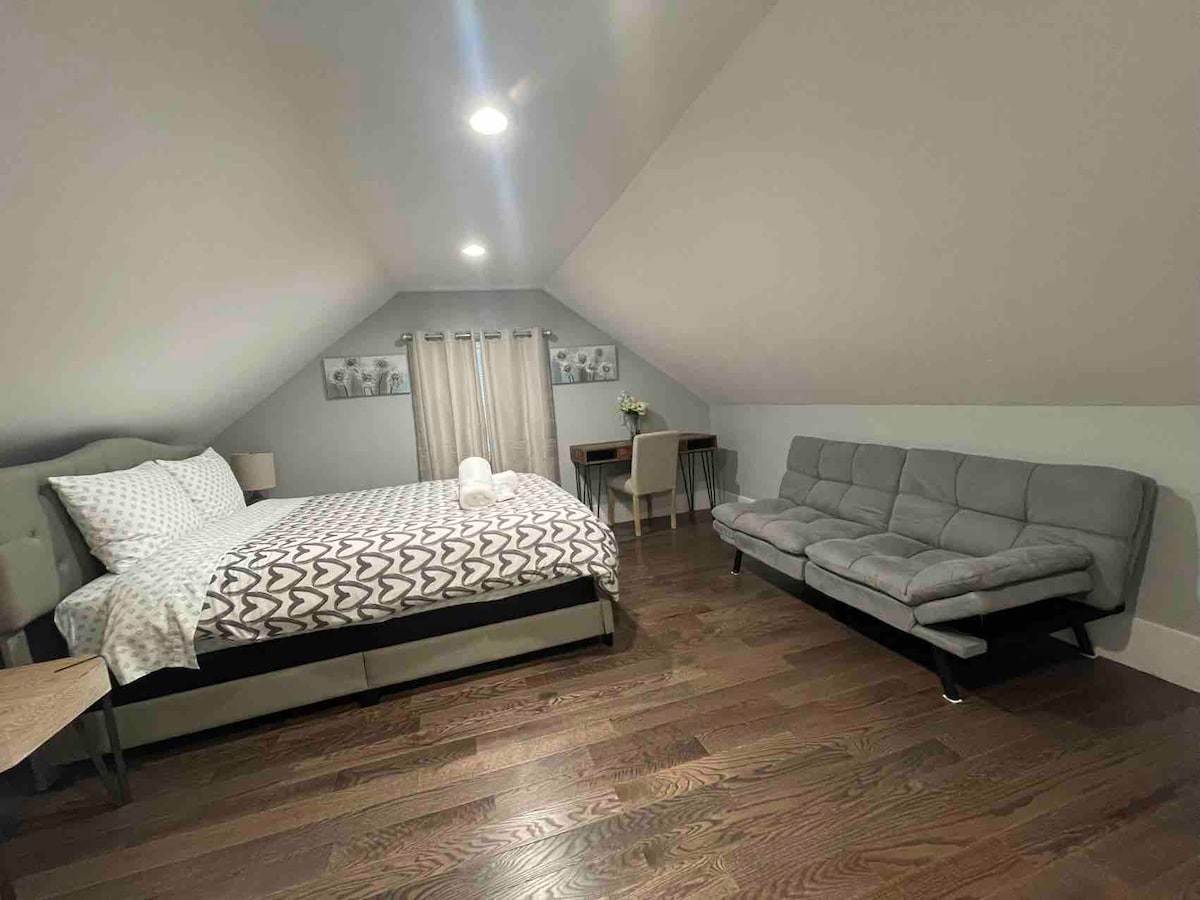 Насолоджуйтеся тихим відпочинком з окремим входом у приватній квартирі-лофті, розташованій на Південному узбережжі, штат Массачусетс. Лофт – це великий відкритий простір, який наповнює природне світло. Насолоджуйтеся прогулянками на природі залізничною стежкою Абінгтон/Ганновер для чудової ранкової прогулянки або приємного вечора на приватному балконі. У вашому розпорядженні невелика кухня на горищі. У нас є паркувальне місце перед будинком, швидкий Wi-Fi та спеціальний стіл для роботи, якщо вам це потрібно. Цей лофт дивовижно комфортний і спокійний.
