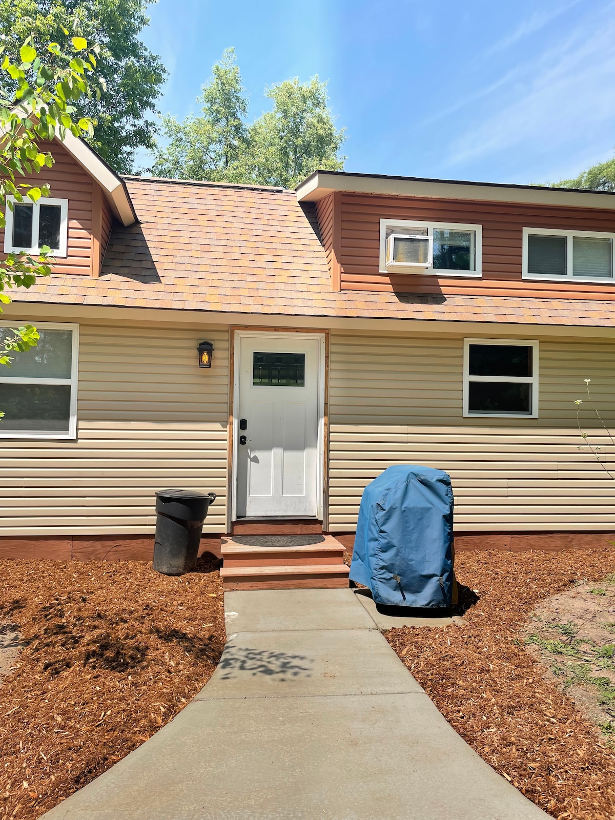 Welcome to our private Tiny Villa! It is completely stocked with dishes, cookware, gas grill, beach chairs, towels, wifi, fire pit etc… Tucked away overlooking the pond, it’s a perfect place to relax after a day of activity. An easy 20 minutes to Traverse City where you can go to the beach, shop or enjoy many excellent restaurants. Firewood available on site & have the following to RENT: Pontoon, kayaks, & paddle boards ( Contact H2O Sports Rentals to book these items or message us)