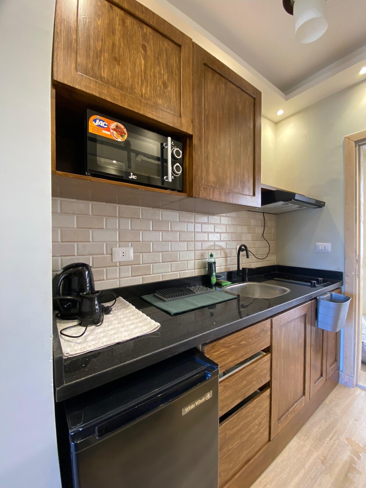 Ласкаво просимо до студії Amberwood – затишного місця відпочинку, де природні дерев’яні тони поєднуються з сучасним комфортом. Розслабтеся, відпочиньте та насолоджуйтеся теплим, стильним помешканням, призначеним для спокійного перебування.