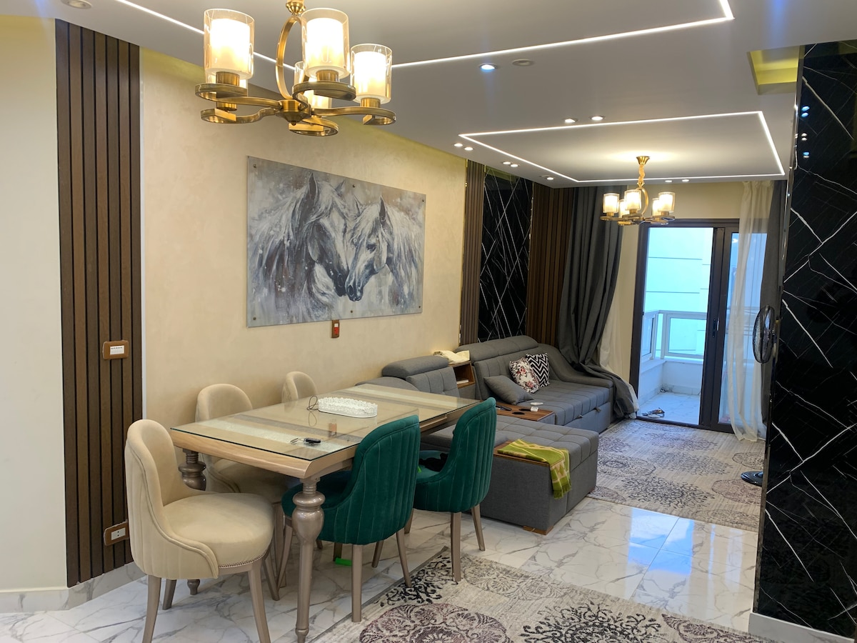 Charming design, view and location. The apartment provides all the pleasures and perks. A fully furnished private residence. Perfect for weekend getaways, business trips and work from home or cozy home base while exploring everything in ras el bar and damietta. - 5 mins walk to beach and pool with access to restaurant, cafe, mosque and market. - 5 mins drive to nearby aquapark, circus and - amusement park - 10 mins drive to city center - 15 mins to damietta - 15 mins to New Damietta