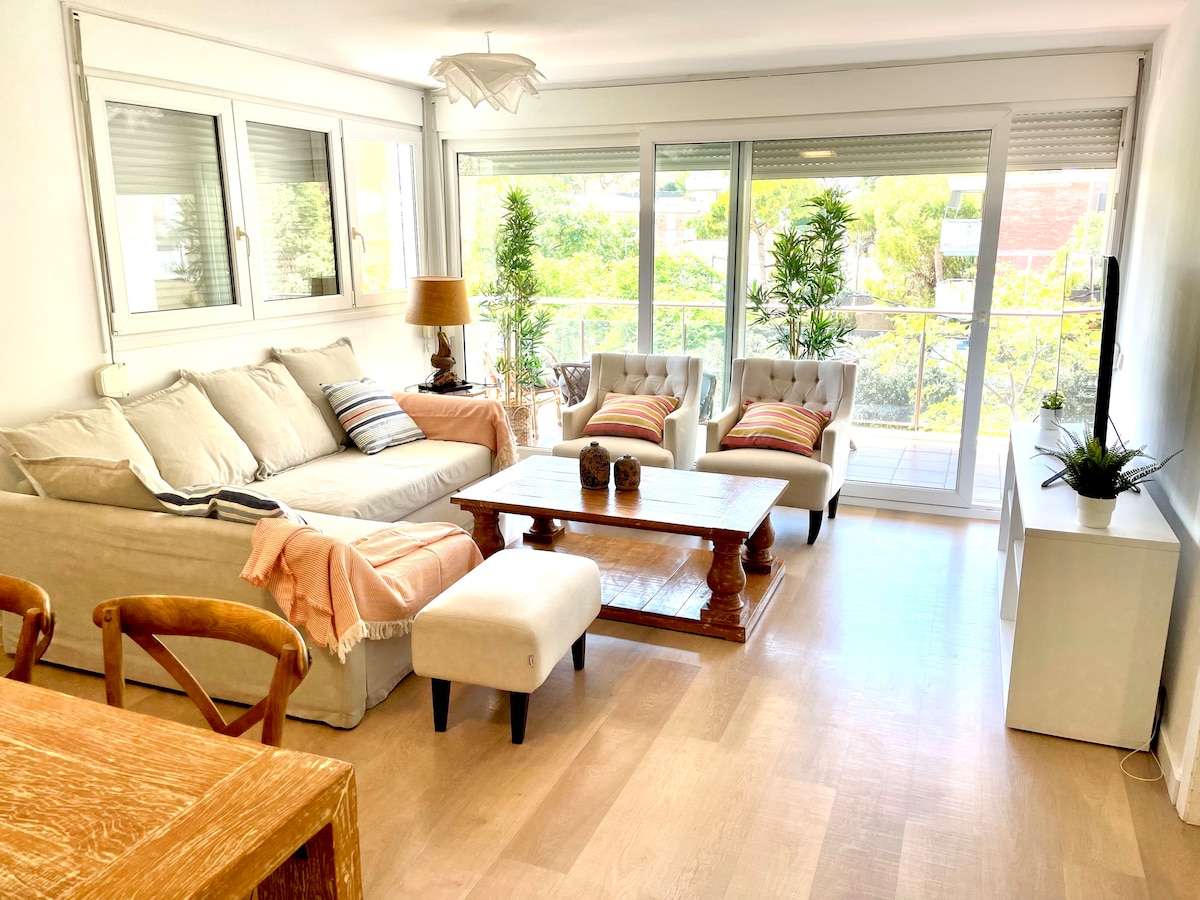 Всього в 15 хвилинах від аеропорту Барселони Брендові нові апартаменти з чудовим видом на басейн та гори. Він має дві спальні з ліжком королеви в обох. Вміст до 4 осіб. Кондиціонер. Дуже затишний район і менше 2 км від пляжу. Басейн та велика садова зона. Вона має автостоянку та громадський транспорт на однакових дверях.