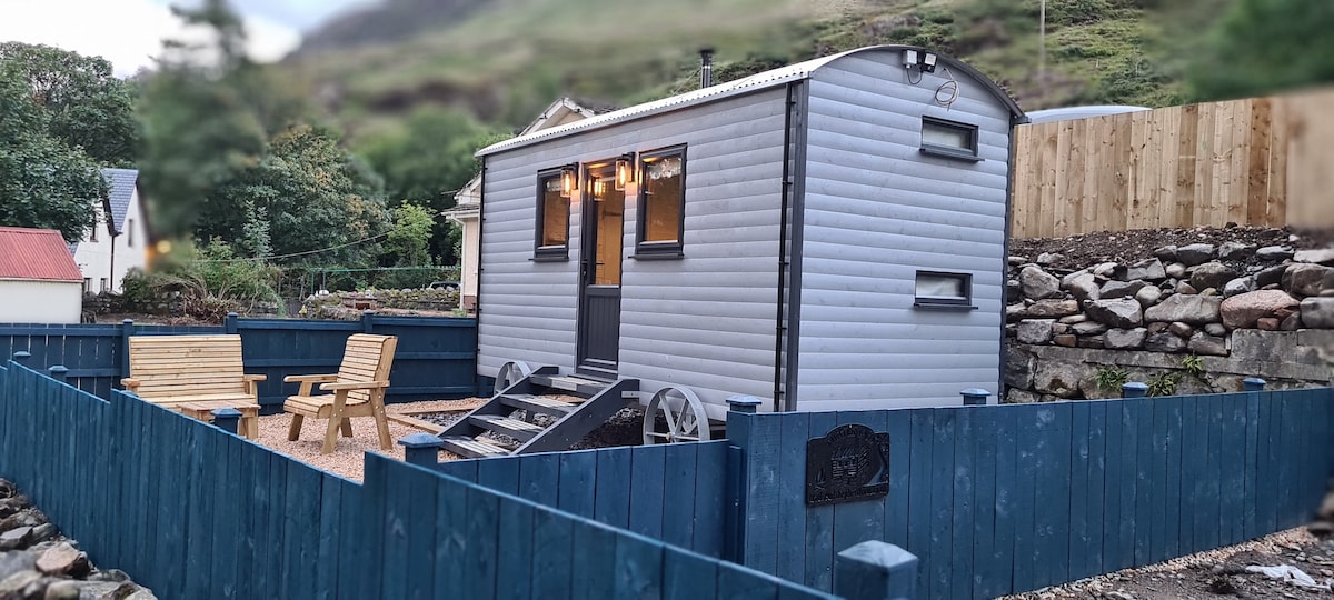 Трейлс-Енд - хатина для пастухів ручної роботи, розташована в затишному селі на березі Лох-Дуйча. Цей міні-будинок має сучасний житловий простір, який підходить для 2 осіб, з двоспальним ліжком і односпальною спальнею, ванною кімнатою та кухнею, інтер 'єром пастуших фургонів. Приватний зовнішній простір чудово підходить для купання в атмосфері озера та навколишніх гір. Це фантастична база для вивчення місцевості з багатьма пам 'ятками поблизу або зупинка для відпочинку під час прогулянки.