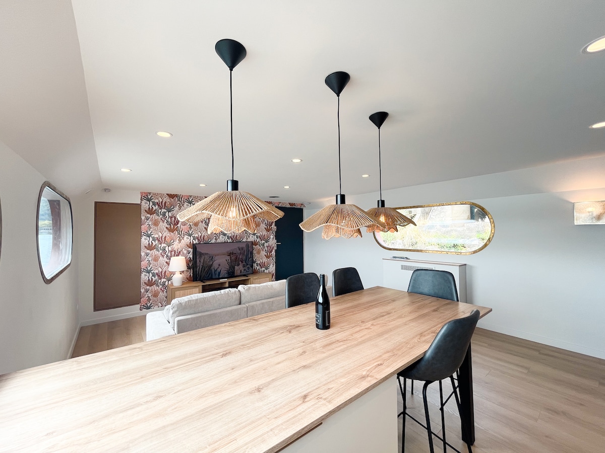 БУДІВЛЯ**** Ця прекрасна квартира, розташована в ідеальному місці на березі Рони, посеред Тен-л'Ермітажу, спокусить вас своїм шармом, спокоєм і чудовою терасою! З великої, залитої світлом вітальні відкривається неймовірний краєвид на річку… Це помешкання площею 100 м² складається з 2 великих спалень, обладнаних дуже зручними ліжками шириною 160 см, та однієї меншої спальні з ліжком шириною 140 см. Ви оціните близькість до магазинів, ресторанів, винних крамниць тощо.