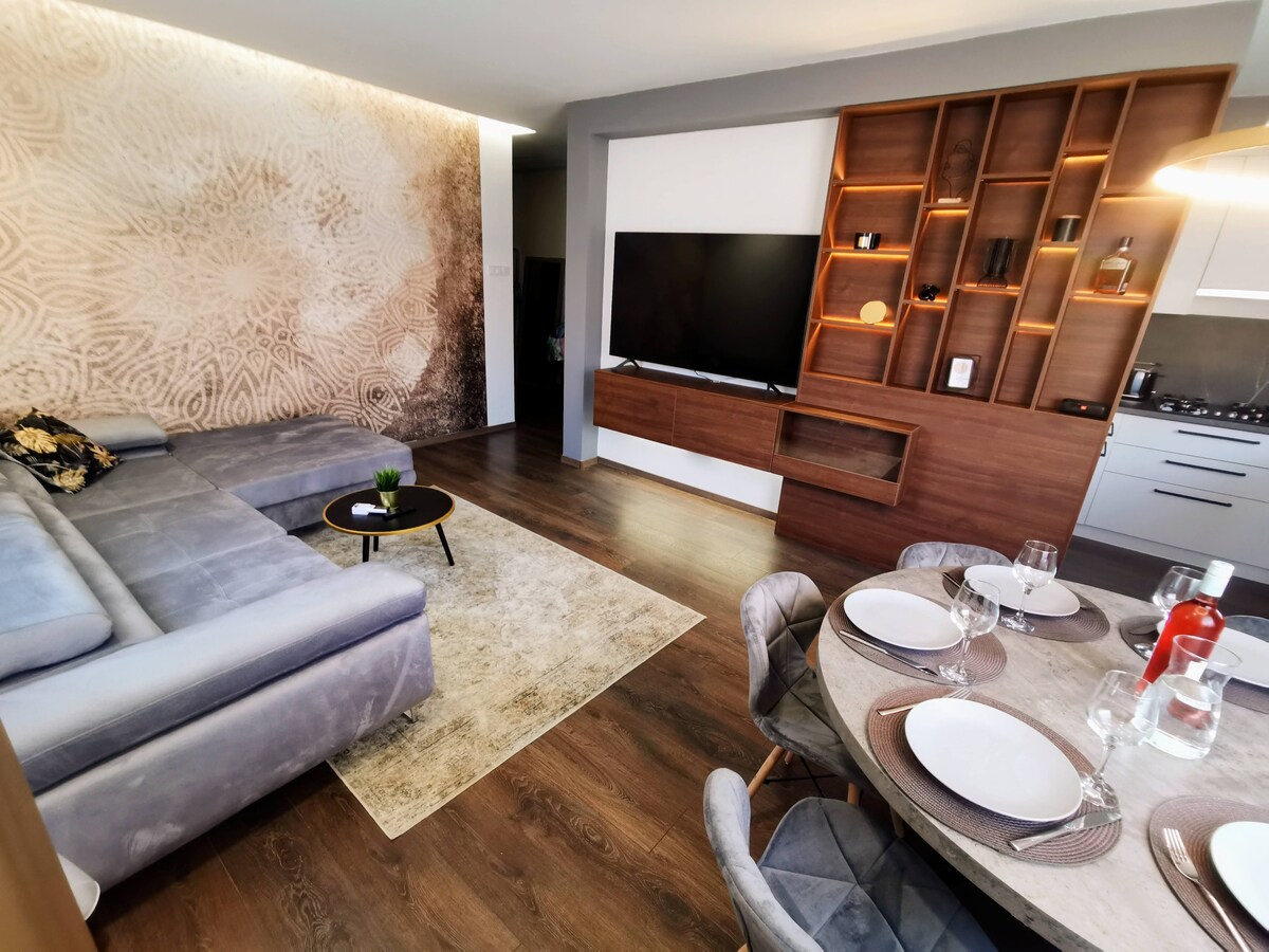 Відчуйте зручне та приємне перебування в нашій центрально розташованій 1-кімнатній квартирі, де сучасний дизайн поєднується з комфортом. Всього в 4 хвилинах ходьби від залізничного вокзалу та в 500 метрах від пішохідної вулиці (вулиця Баросса). Насолоджуйтеся містом вдень і барвистими краєвидами на захід сонця з власного балкона.