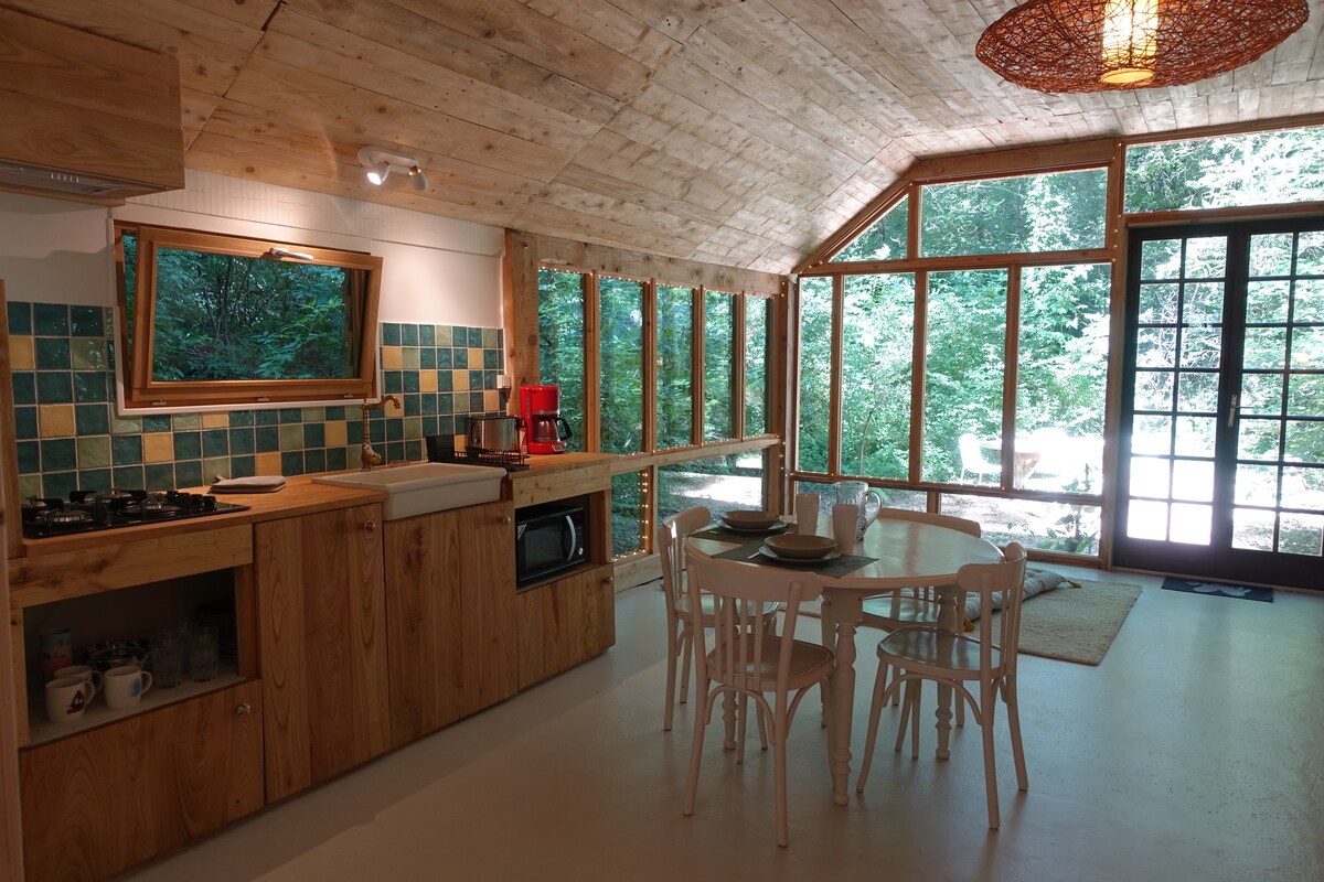 Невеликий будинок площею 27 м2, розташований в оточенні дерев у затишній обстановці. Щоб отримати до нього доступ, вам доведеться пройти по доріжці за 200 осіб на сильному підйомі. Будинок включає вітальню з лампою, кухонну зону, спальню та ванну кімнату з сухими туалетами. Сніданок не включено, але ми пропонуємо домашні страви. Максимальна потужність становить 800 Вт: перевірте свої пристрої перед прибуттям. Ми спілкуємося виключно за допомогою повідомлень/електронної пошти, але телефон тут не отримує.