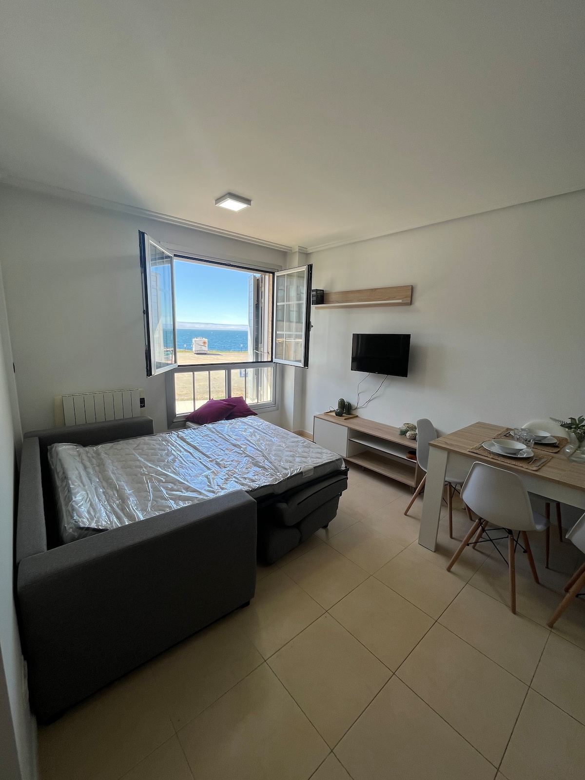Nuevo y luminoso apartamento en Los Castros, A Coruña. A pocos minutos del Mirador de Eirís y a 10 min caminando de Playa de Oza. 1 hab. doble, salón con sofá cama, cocina equipada, baño con bañera y lavadora. ¡Descubre la ciudad y relájate en tu refugio costero!