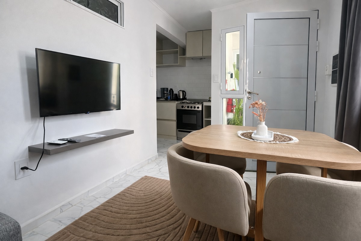 Квартира Aura Apart розташована в Реконкісті, в регіоні провінції Санта-Фе, і має балкон і терасу з видом на сад. Безкоштовний Wi-Fi у всьому помешканні. Квартира з кондиціонером пропонує 2 спальні, вітальню, повністю обладнану кухню з холодильником, плитою, мікрохвильовою піччю та кавоваркою. У ванній кімнаті з біде та душем є рушники, постільна білизна та туалетні приналежності. Ідеальний стіл для вашої робочої зони, насолоджуючись ранковою кавою у стилі.