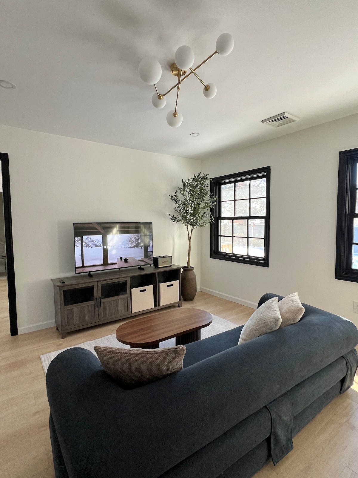 Ласкаво просимо до Marlboro! Цей приватний простір у нашому помешканні має окремий вхід, окрему ванну кімнату з гарним стоячим душем, їдальню (не кухню) з чайником та кавоваркою, тостер, мікрохвильову піч та холодильник з морозильною камерою. Є стіл і стільці, диван Love Seat, який перетворюється на невелике дитяче ліжечко, ліжко queen-size, шафа та 55-дюймовий смарт-телевізор із повноцінною підставкою для телевізора. Нам дозволено працювати в місті Мальборо, і щорічно проводиться перевірка пожежної безпеки.