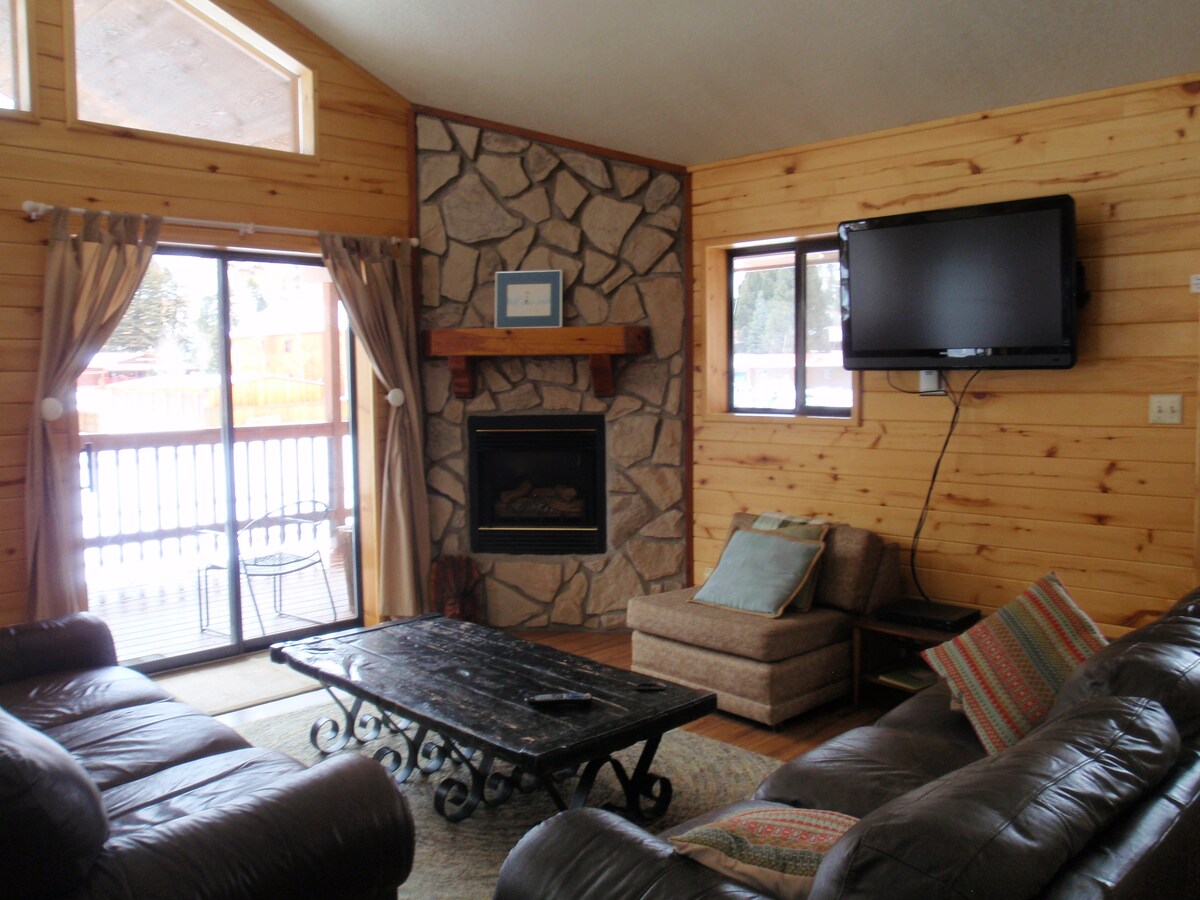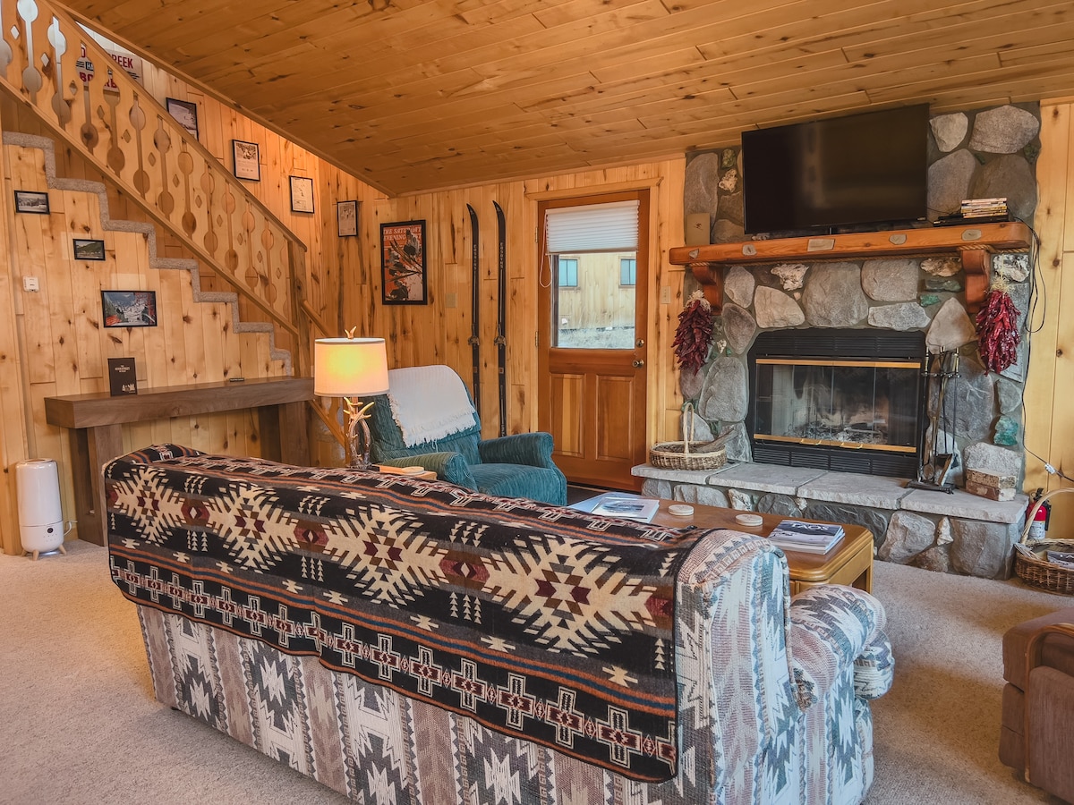 Це вражаюче місце розташоване неподалік від усього, що полегшує планування візиту! Це єдиний окремий кондомініум у Angel Fire (жодних інших квартир, прикріплених до цього)! До гірськолижного курорту Angel Fire Resort і велосипедного парку можна легко дійти пішки. Налаштування чудово підходить для 4 осіб з гарним ліжком розміру King size у головному помешканні та диваном розміру Queen size La-Z-boy у вітальні! Багато простору на терасі за межами кондомініуму та гарна зона для гриля! У кондомініумі також є величезні смарт-телевізори та оптоволоконний Wi-Fi.