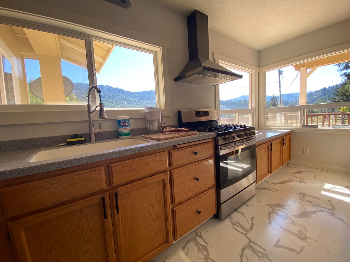 Цей чарівний лісовий будиночок розташований у лісі з повною приватністю, і все ж за кілька хвилин від міста та доріг, що ведуть у всіх напрямках. У комплекті з невеликою кухнею,центральним повітрям і опаленням,безкоштовним кабелем і телевізором з плоским екраном для перегляду , барбекю на вулиці, критим накритим настилом і меблями на вулиці, з чудовим 180 градусами. Панорамний вид на долину Салмон-Крік. Ви дійсно відчуватимете, ніби ви плаваєте в будинку на дереві. Є Єва 15 хв. Супер заряд 12 хв. Відсутність.