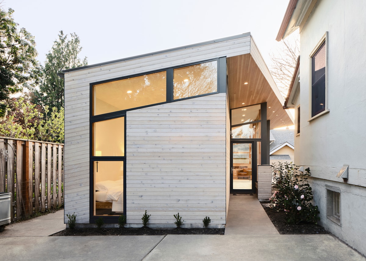 Бунгало New Sellwood-Moreland в центрі чарівного та історичного району. Повністю окремо від головного будинку. Повна кухня, матрац King size Tuft & Needle, диван-ліжко, кабельне телебачення, Wi-Fi. Кілька кварталів від кави, барів, ресторанів, продуктового магазину тощо. Автомобіль необов 'язково: 2 квартали від автобусної та велосипедної доріжки. Примітка. Спіральні сходи з 'єднують 2 поверхи. Тихий. Район з легким паркуванням на вулиці (примітка: під 'їзд призначений для власників). Не паліть і не падайте з домашніми тваринами. Дозвіл № 18-133329.