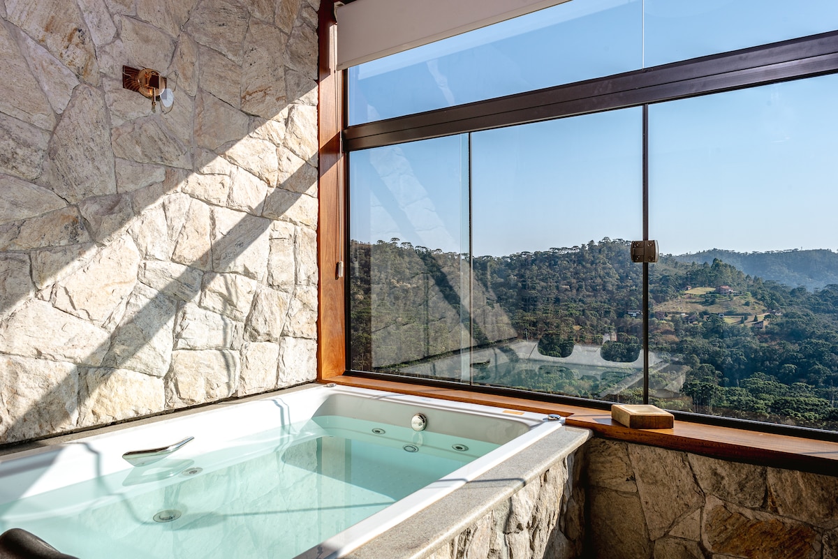 Vista Privilegiada com piscina, sauna e banheira!
