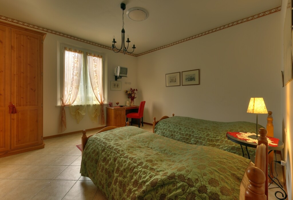 La camera BLU è matrimoniale con bagno privato in camera con vasca. La camera verde è matrimoniale con bagno privato con doccia.