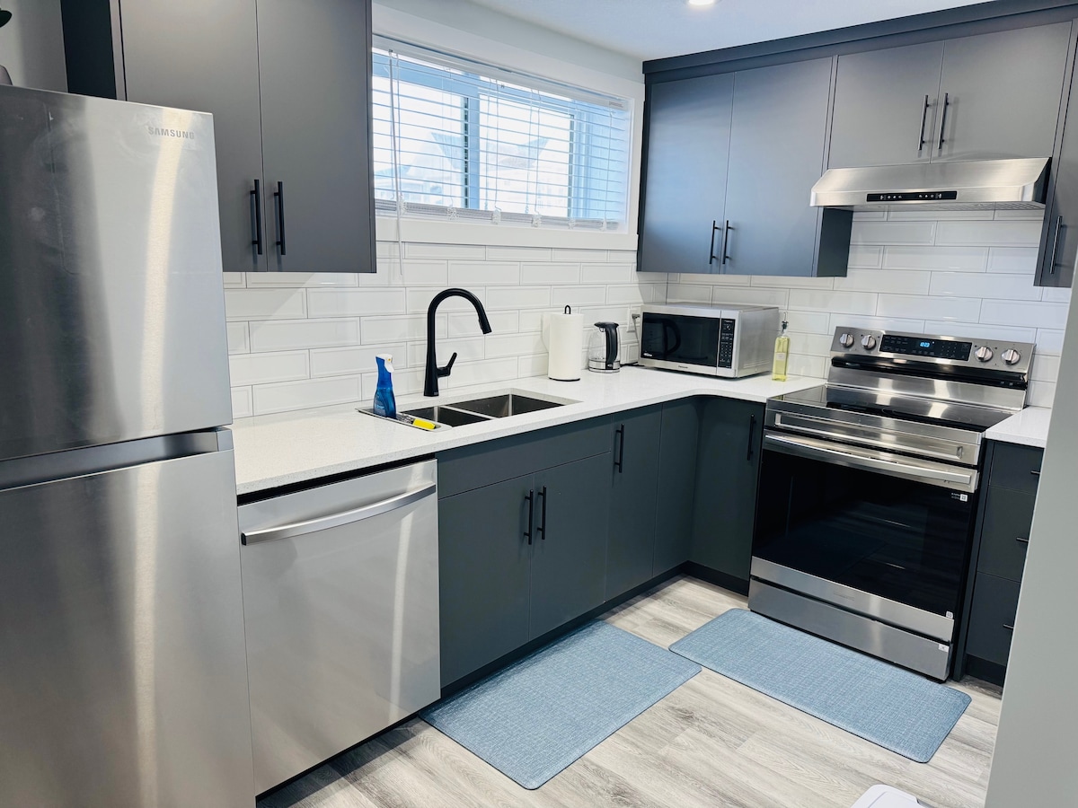 A clean, cozy and spacious brand new basement suite in a serene neighborhood south of Regina and 5 minutes drive from the Airport. The suite has a private entrance with a smart lock, workstation with a monitor and a well-equipped kitchen.