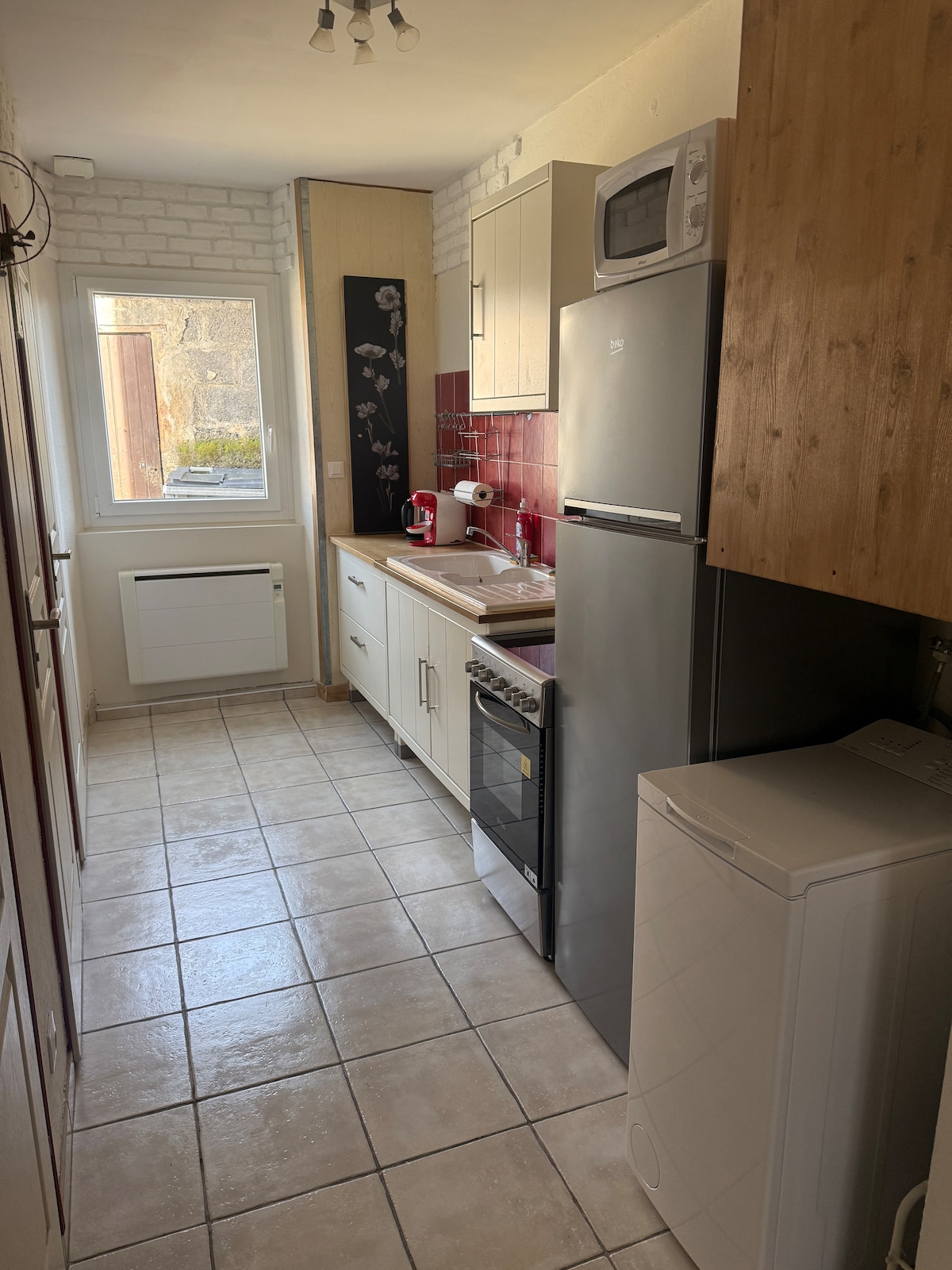 Maison de village au calme dans une impasse, alliant le charme de l'ancien et la modernité. Idéalement située entre Grenoble, Lyon et Valence. Vous entrez dans une grande cuisine équipée pour 5 personnes (plaque vitrocéramique / micro-ondes / lave vaisselle / frigo / cafetière / bouilloire/TV). A l'étage se trouvent 2 grandes chambres et une salle de bain (baignoire à usage de douche uniquement) et toilettes. Courette devant pour stationner 1 voiture.