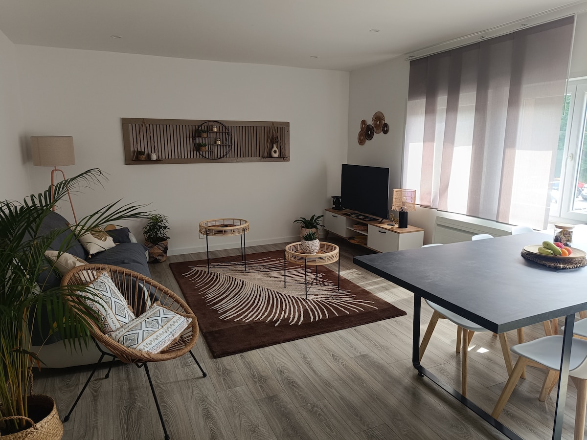 Наша квартира розташована в 10 хвилинах їзди від Реймса, що складається з великої вітальні, включаючи обладнану кухню, їдальню, вітальню з диваном-ліжком, телевізором (плоским екраном) та Wi-Fi. Одна спальня обладнана ліжком 160 x 200 ліжок і ванна кімната з окремим туалетом. Крім того, ви зможете скористатися безпечною парковкою (транспортним засобом і велосипедом) у помешканні. З санітарних причин та алергії в цьому помешканні заборонені домашні тварини.