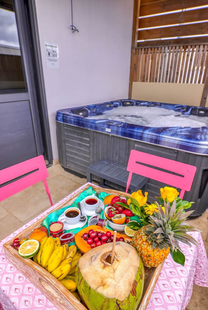 La Cour Mont Vert пропонує одне з чотирьох чарівних бунгало, розташованих на висоті 350 метрів у центрі екзотичного саду площею 4 гектари, вирощеного в органічному сільському господарстві. Поруч із пляжами Сен-П 'єр і Гранде-Анс ви зможете насолодитися чудовим видом на узбережжя, щоб насолодитися незабутніми заходами сонця з видом на море. Ви оціните спокій і спокій, щоб відпочити від часу.