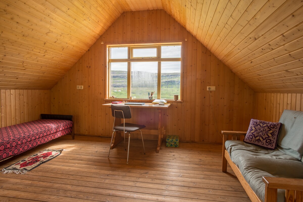 Для всіх, хто віддає перевагу віддаленому оточенню та тихої природи. У номері є два ліжка (двоспальні або односпальні на ваш вибір), повна постільна білизна та сніданок. Кімната має чудовий вид! Кухонне приладдя для гостей. Якщо ми зв 'язувалися заздалегідь, ми могли б приготувати вам вечерю з нашим дивовижним меню. Спільна вітальня/зал для сніданку, спільна ванна кімната з душем. Колишній сарай також є спільним приміщенням - з великим вікном, що виходить на затоку Брейдафьордюр.