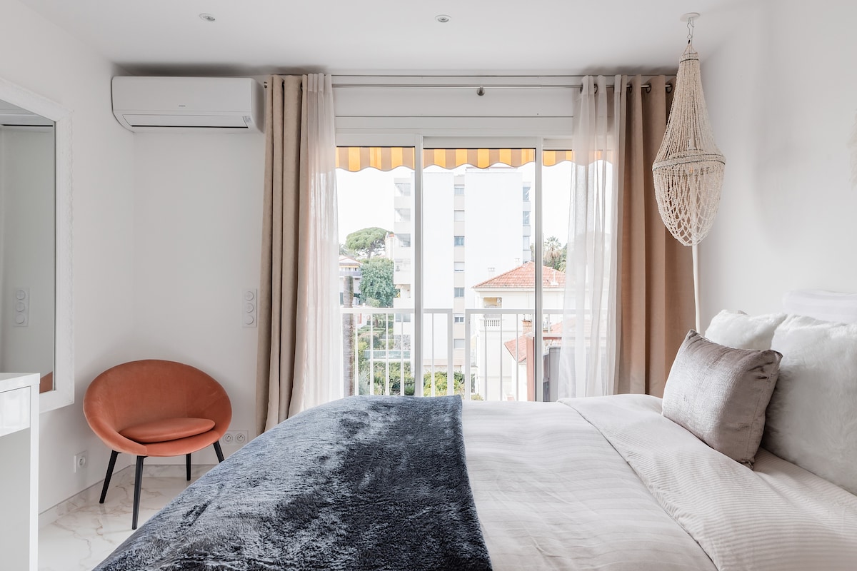 Красива, простора квартира площею 47 м², повністю відремонтована високоякісними матеріалами, розташована поруч із магазинами та ресторанами, а також за 14 хвилин ходьби (1 км) від Палацу фестивалів. Ця квартира з однією спальнею розташована на 5-му поверсі з доступом до ліфта. Вона зачарує вас своїми сучасними особливостями та спокійним балконом. Ключі можна забрати в місцевому магазині (2 хвилини пішки) до 23:30. Після цього часу стягуватиметься доплата в розмірі 20 євро.