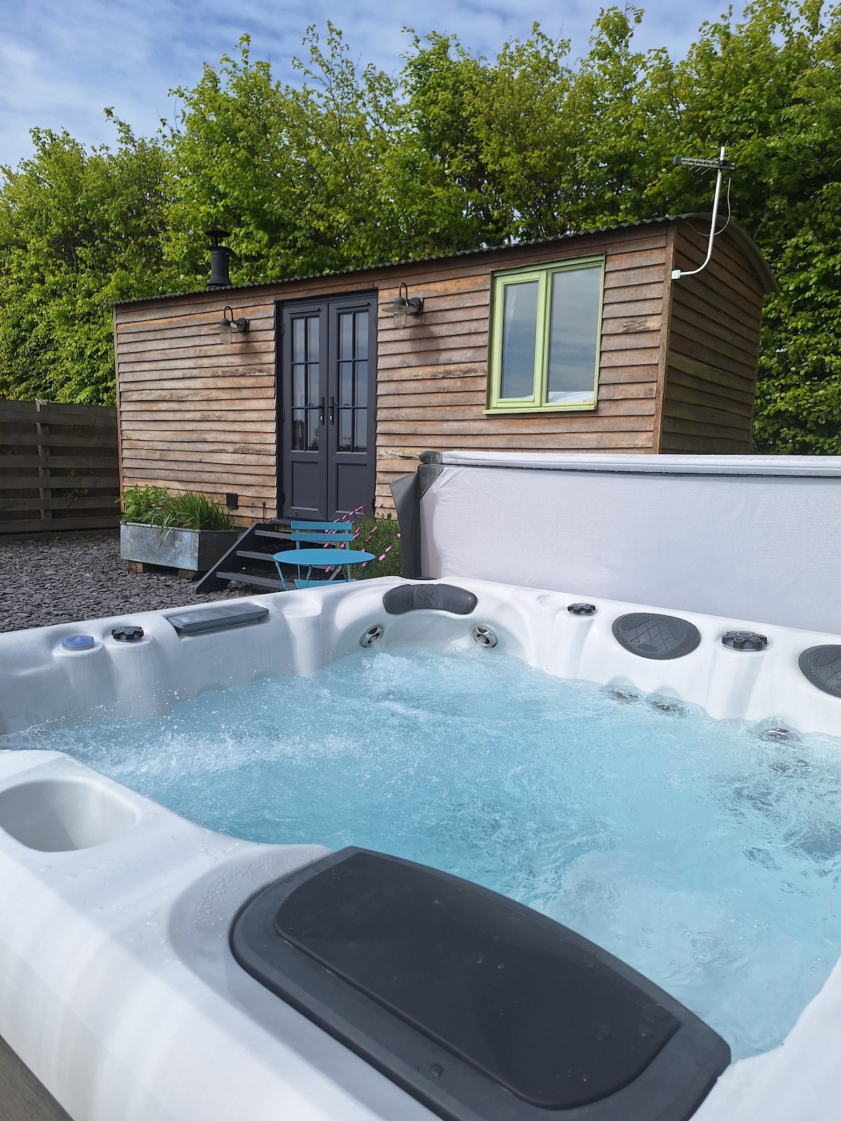 Cuddfan Fach: Luxury Glamping Shepherd's Hut зі сніданком. Розслабтеся стильно біля підніжжя пагорбів Преселі з гідромасажною ванною, дров 'яною конфоркою, підігрівом підлоги та затишним ліжком king-size з простирадлами з єгипетської бавовни. Ідеально підходить для вивчення прихованих перлин Пемброкшира та прогулянок пагорбами. Насолоджуйтеся спогляданням зірок під темним небом, гарячим душем і безпечним садом, де можна перебувати з домашніми тваринами. Ваш ідеальний відпочинок, щоб розслабитися й відновити зв 'язок.