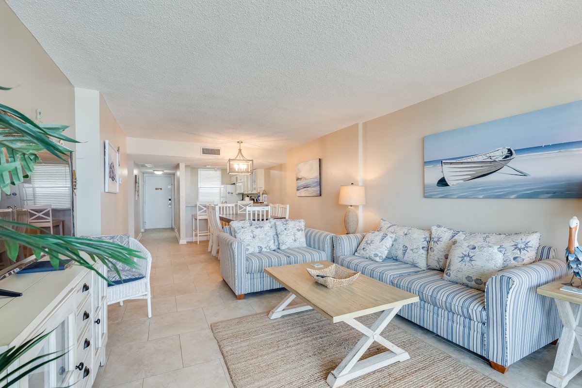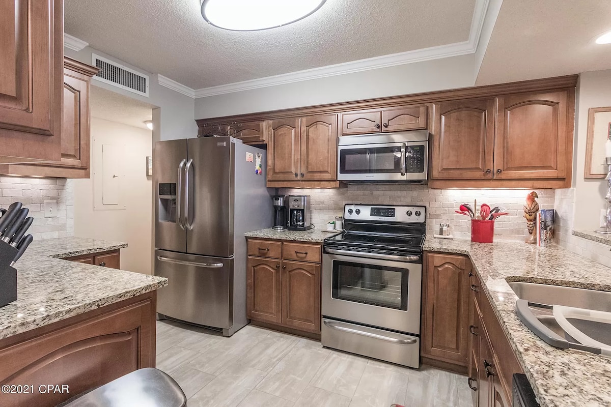 Насолоджуйтеся сонцем і насолоджуйтеся пляжним життям. Пляжний кондомініум, де можна перебувати з домашніми тваринами, у Dunes of Panama з ідеальним видом на чудову затоку та басейни! Басейн із підігрівом, листопад-травень. Дуже бажаний 5-й поверх будівлі з низькою щільністю розташований трохи вище пальм із великим видом на воду. Швидкий доступ до ліфта, без сходів або натовпів між вами та пляжем або 3 басейнами. Відпочиньте на балконі з видом на безтурботні смарагдові води, 4 нові майданчики для піклболу та стежте за сім 'єю біля басейнів або кортів нижче.